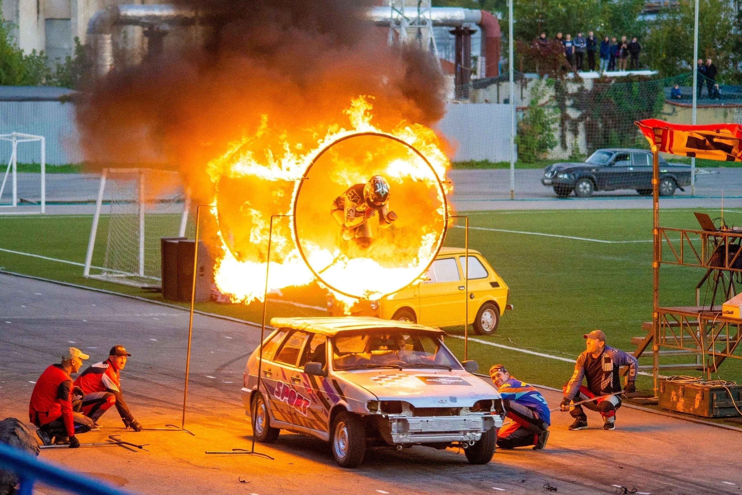 Самые опасные трюки на грани возможностей, машины из «Безумного Макса» и мультфильма «Тачки», трансформеры Вазбелби (отечественная версия Бамблби) и Оптимус Прайм, БРДМ с огневыми пулеметами, квадроциклы, бои легковых авто с Бигфутом, прыжки на высокой скорости в горящие кольца... Не перечислить всего, что будет на экстрим-шоу, но само оно будет идти все выходные.