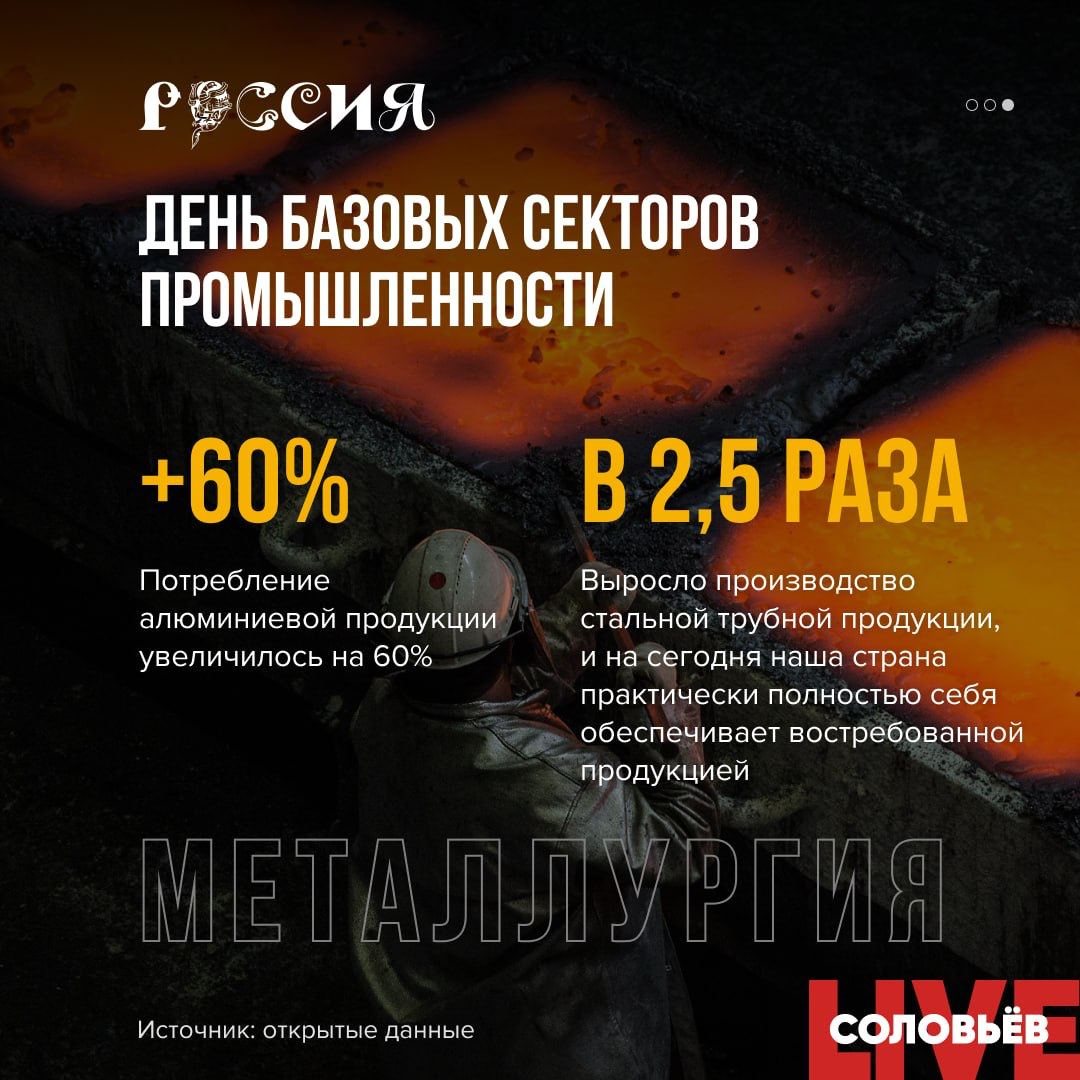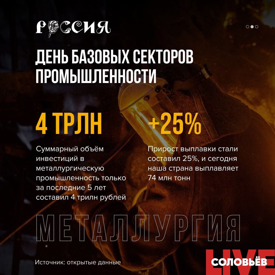 ▪️Суммарный объем инвестиций в металлургическую промышленность только за последние 5 лет составил 4 триллиона рублей.
