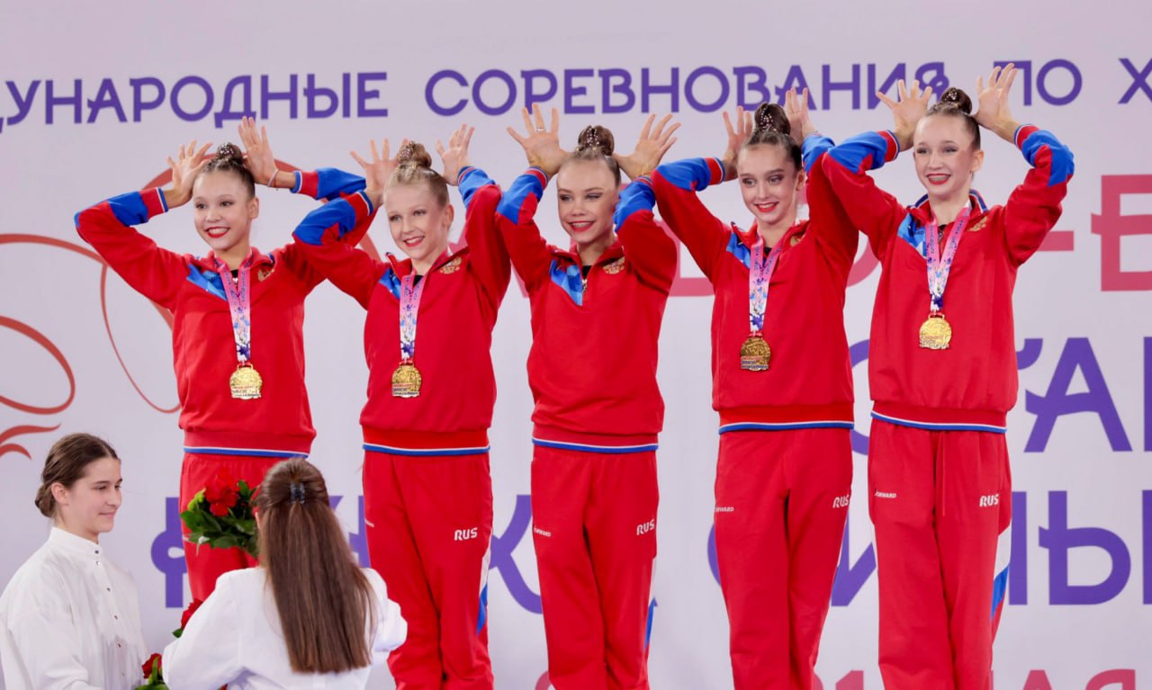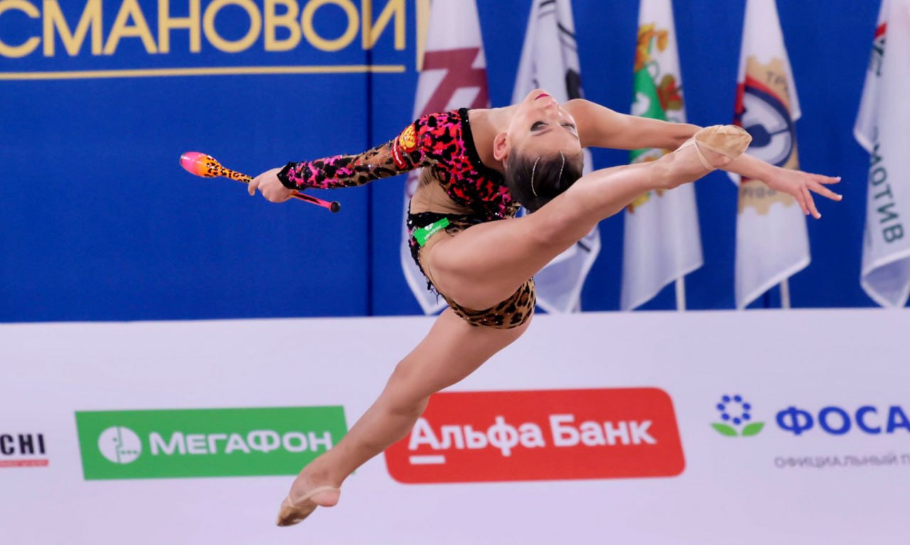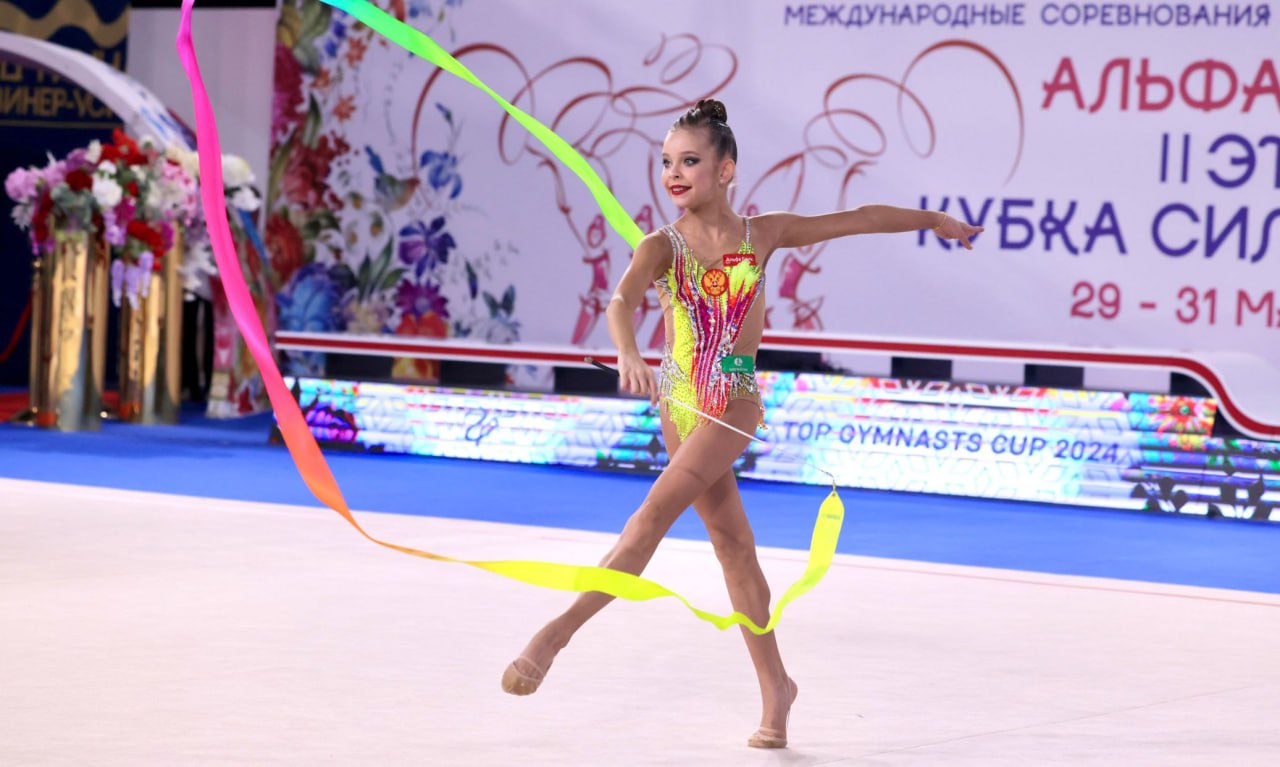 Победительницей в упражнениях с обручем, мячом и булавами стала Лала Крамаренко. Арина Янковская – лучшая с лентой, Милена Щенятская – первая без предмета.