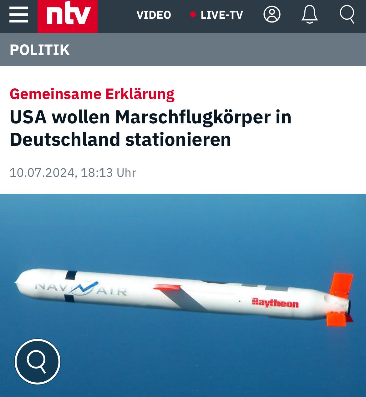 🇺🇸🇩🇪 США приступят к размещению дальнобойного оружия в Германии в 2026 году – Пентагон Отмечается, что среди дальнобойных ударных систем будут: SM-6, Tomahawk и потенциальное гиперзвуковое оружие. Tomahawk - одна из крылатых ракет. В зависимости от типа, они имеют дальность до 2500 километров и в основном используются для целей на земле. США в основном размещали ракеты на кораблях и подводных лодках. Со скоростью менее 900 километров в час они сравнительно медленные и имеют очень низкую высоту. В прошлом США атаковали цели в Ираке или Афганистане с помощью ракет «Томагавк». #германия #сша #Tomahawk #гиперзвук #важное