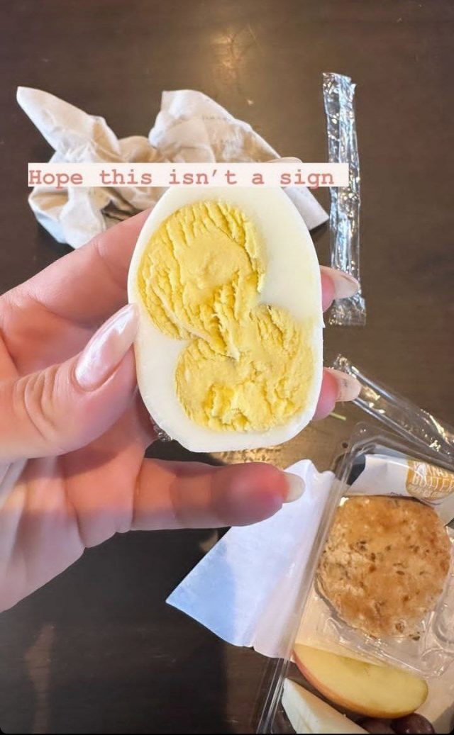 Девушка разместила фото собственного завтрака и показала половинку яйца вкрутую с двумя желтками внутри. «Надеюсь, это не знак», — подписала она фото.