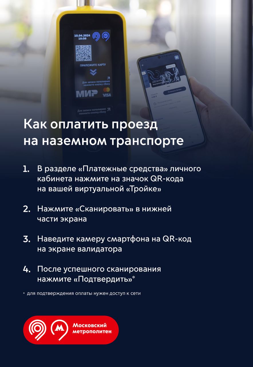 Максим Ликсутов отметил, что виртуальная «Тройка» работает в метро, на МЦК, МЦД, регулярном речном и наземном транспорте. Теперь необязательно носить с собой пластиковую карту — снова можно платить за проезд смартфоном на турникете.