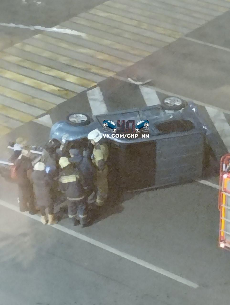 Момент аварии попал на камеры видеорегистраторов других машин. Судя по записи, водитель легковушки, выезжая с улицы Минина, столкнулся с автомобилем, который ехал в этот момент по площади Минина и Пожарского. От удара машина перевернулась.