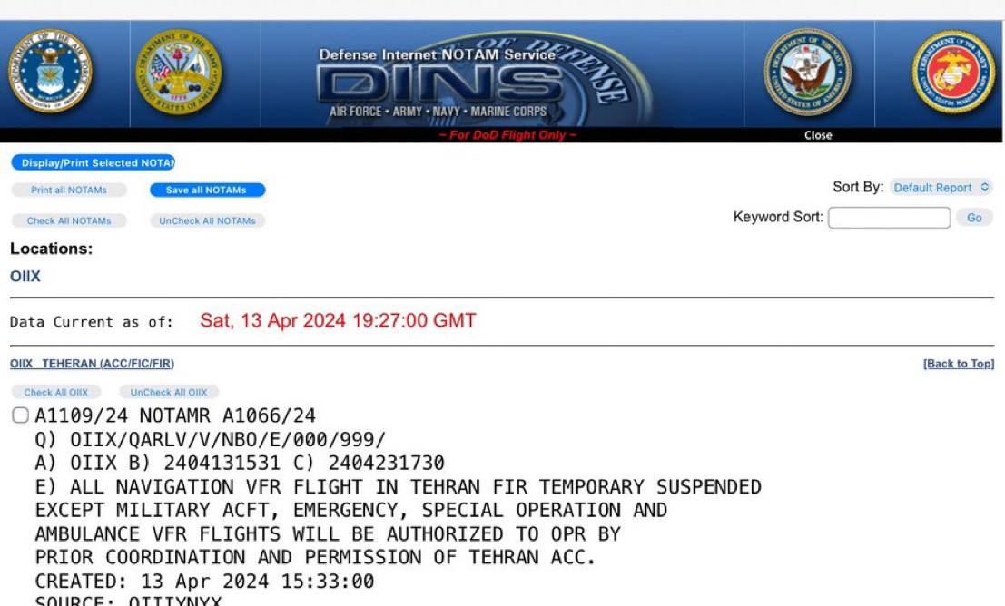 Иран закрыл воздушное пространство над Тегераном - за исключением военных и аварийных самолетов