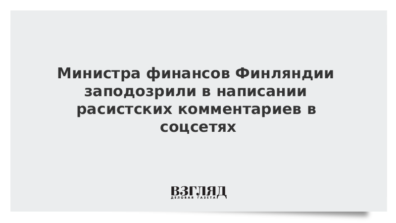 Министра финансов Финляндии заподозрили в написании расистских комментариев в соцсетях