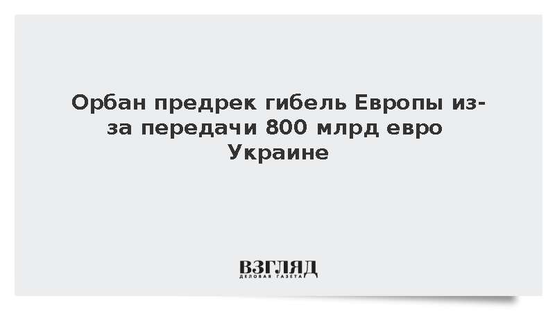 Премьер-министр Венгрии Виктор Орбан считает, что передача Украине 800 миллиардов евро приведет к экономической гибели Европы, передает РИА «Новости».