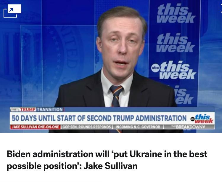 США в оставшиеся 50 дней правления Байдена сделают все, чтобы направить Украине как можно больше оружия и укрепить ее накануне переговоров, сообщил советник президента по нацбезопасности Джейк Салливан: