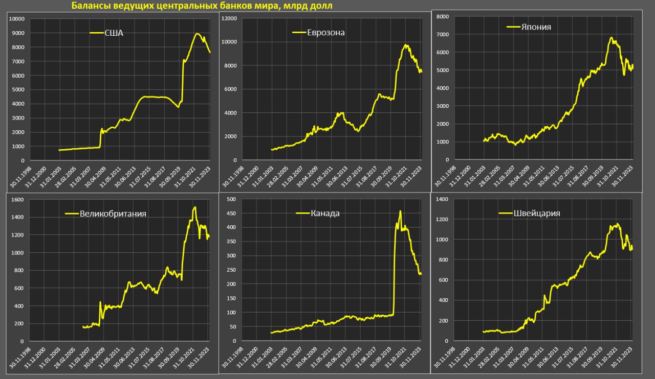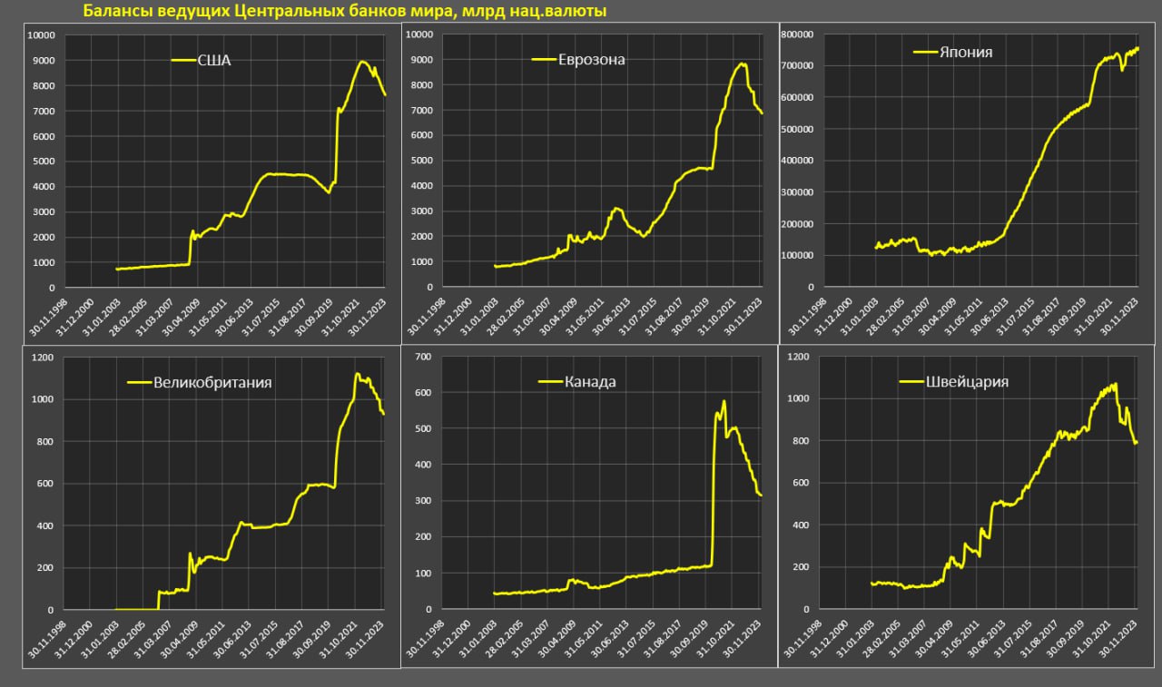 В середине 2024 ожидается остановка сокращения балансов ведущих ЦБ развитых стран, но что будет дальше?