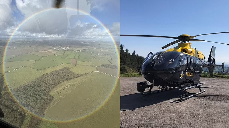 Вертолёт вылетел, чтобы оказать поддержку полиции Южного Уэльса, но на обратном пути его экипаж стал очевидцем невероятного зрелища над округом Вейл-оф-Гламорган. Правоохранители сфотографировали увиденное и поделились снимком круговой радуги в социальных сетях.