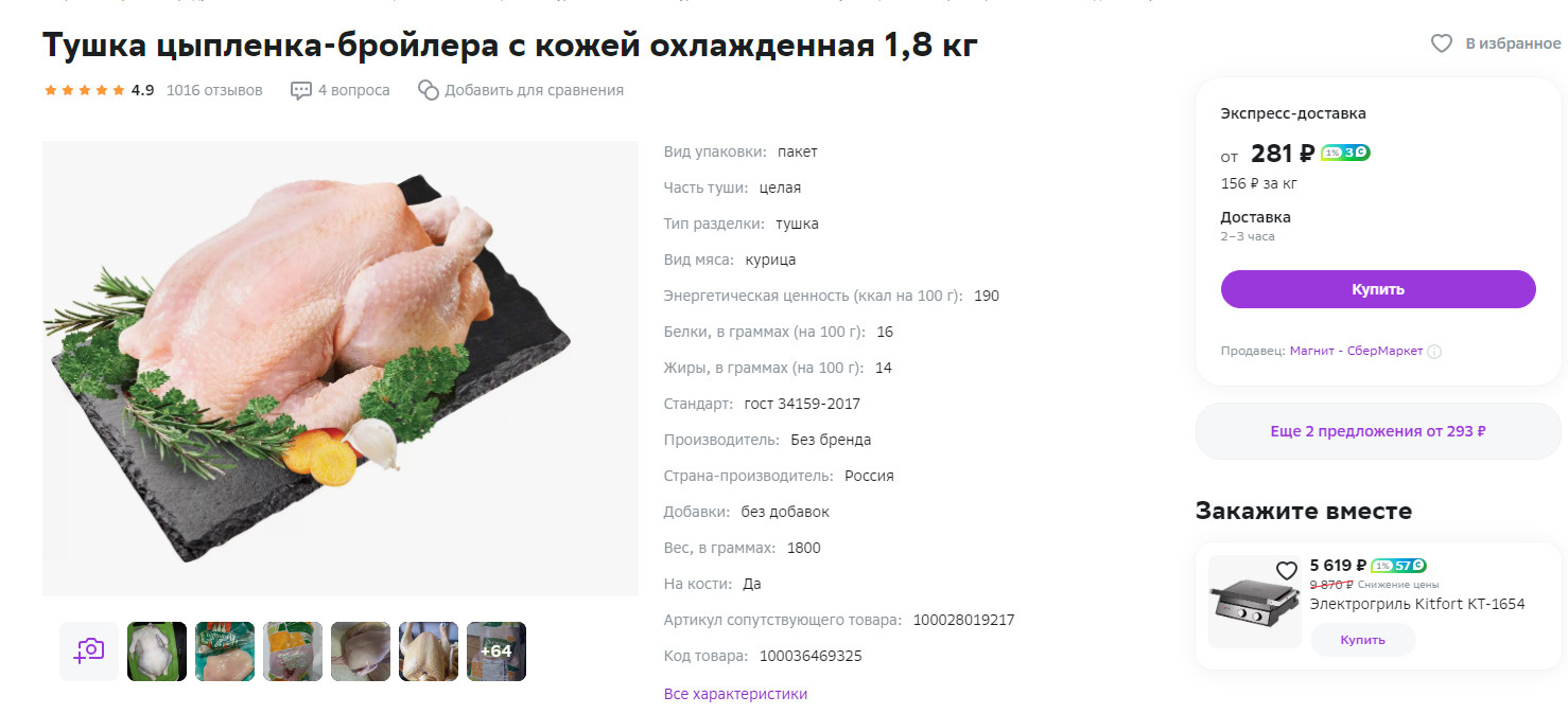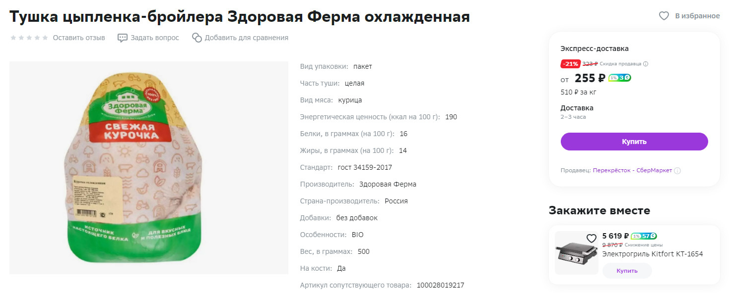 В «О'кее» за тушку просят 200–240 рублей, в «Ленте» — 200–215 рублей. Дороже всего мясо оказалось в «Перекрестке»: там цыплят продают по 306 и даже по 510 рублей за килограмм.