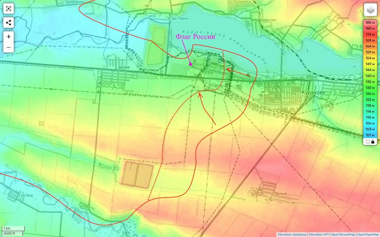 Флаг России поднят солдатами в западной части завода "Электросталь". Неясно откуда мы туда зашли (со стороны Старых Тернов или со стороны ТЭС), но при любом раскладе это обозначает о рассыпании на очаги обороны ВСУ в промке Курахово.