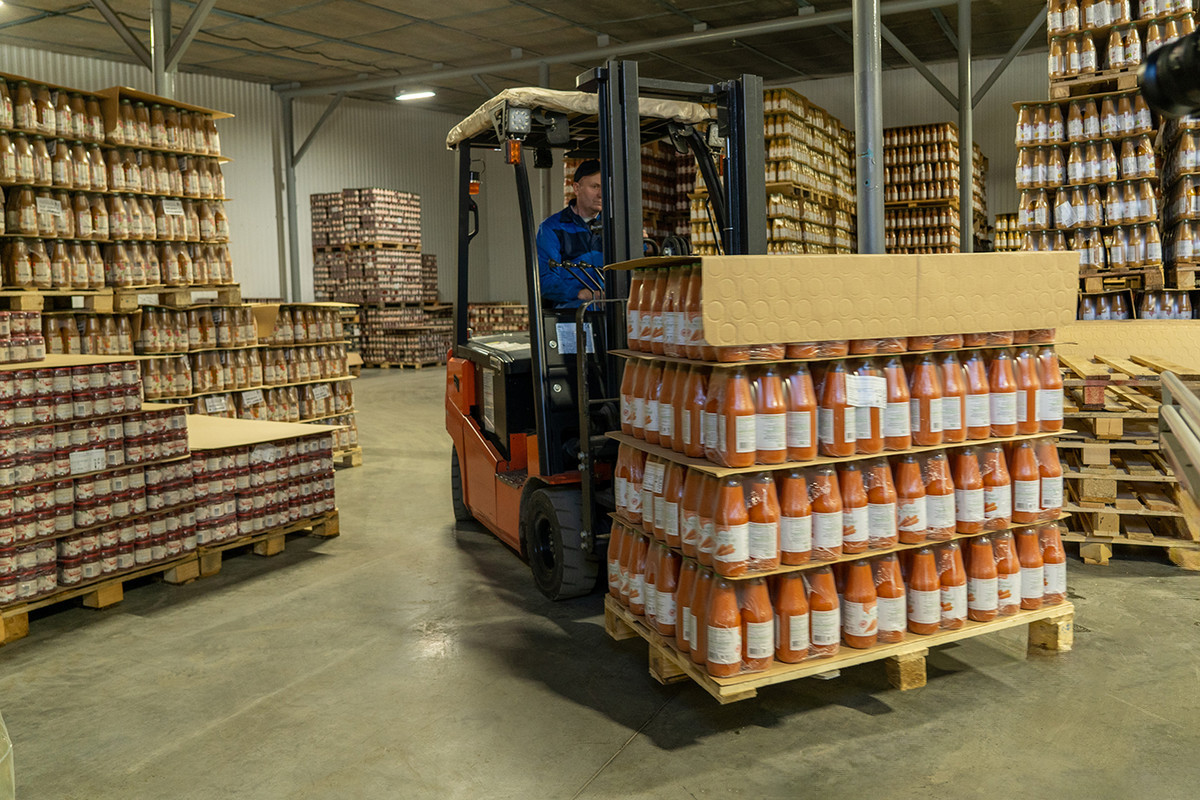 В первом — консервном — делают пюре из всех видов фруктов, овощей и ягод. Здесь же установлена линия по расфасовке соков, нектаров, соусов, джемов и варенья в стеклянную тару.