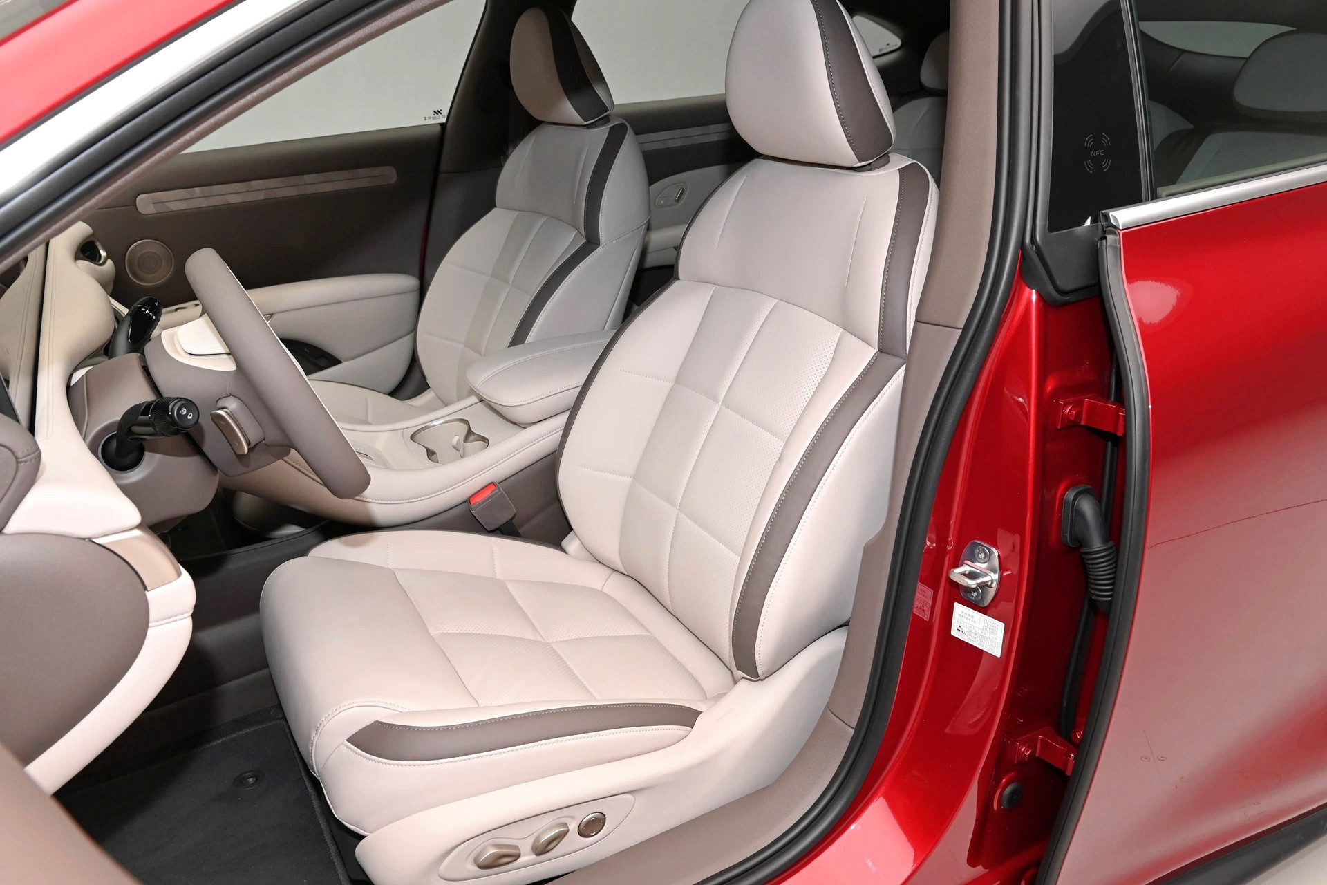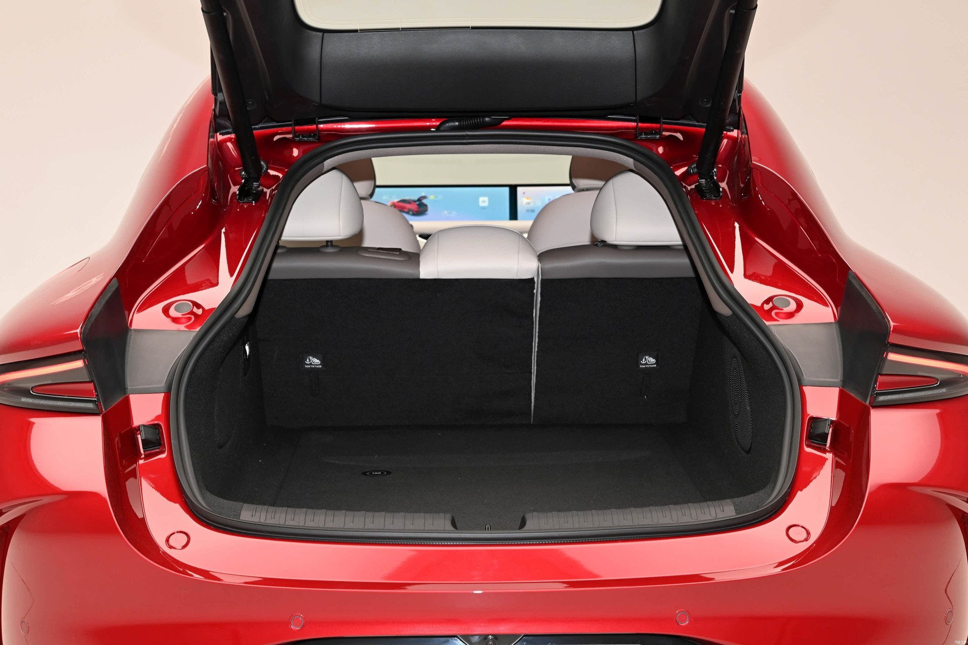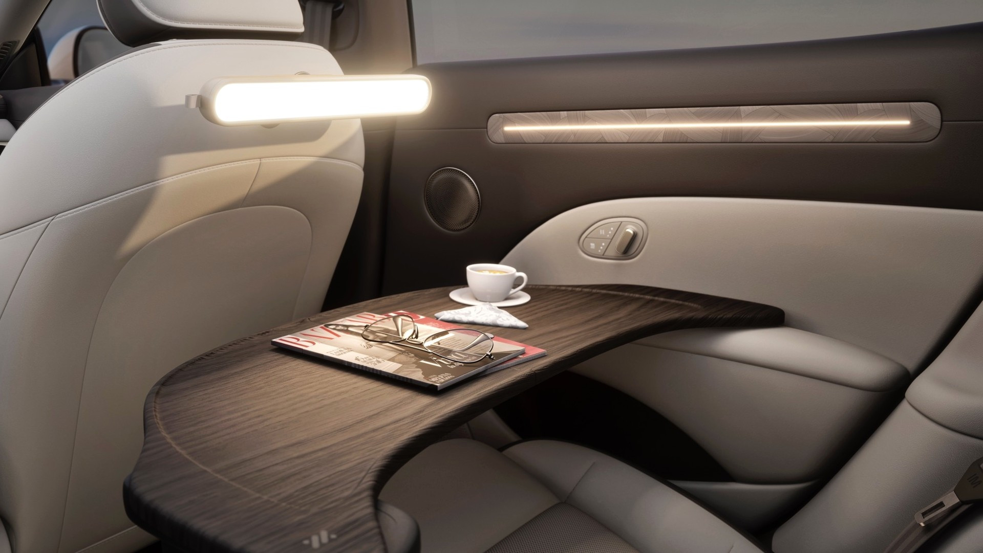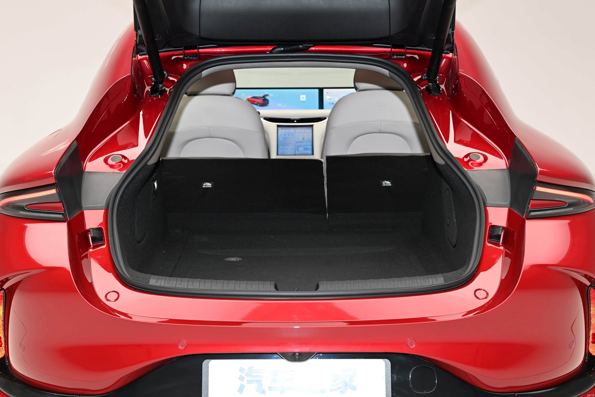 Главное новшество в салоне — более-менее традиционный овальный руль вместо прежнего усечённого штурвала без верхней части обода, клиенты приняли его прохладно. Дизайн дверных карт стал более лаконичным, пересмотрена палитра отделочных материалов. На передней панели сохранилось гигантское двухэкранное табло и ещё один настроечный «телевизор» под ним, но вся программная оболочка обновлена и напичкана самыми актуальными для китайского рынка приложениями. Панорамная стеклянная крыша может менять степень прозрачности. Штатная аудиосистема насчитывает 21 динамик. Комплект электронных ассистентов водителя очень богатый, в него входит в том числе автопилот второго уровня по классификации SAE. Объём основного багажника — 457 л, со сложенными спинками заднего дивана — 1300 л. Спереди под капотом есть небольшой лоток для хранения зарядного кабеля.