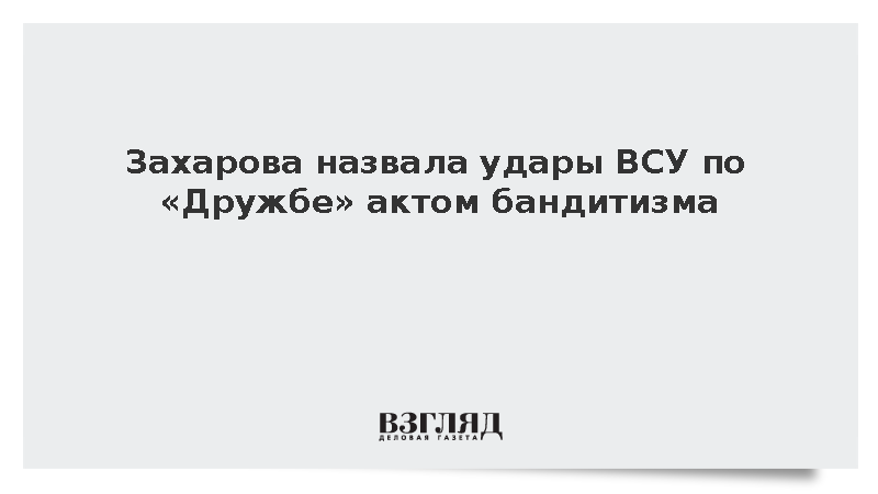 Мария Захарова, официальный представитель МИД России, заявила, что удары ВСУ по нефтепроводу «Дружба» следует классифицировать как террористические, передает ТАСС.