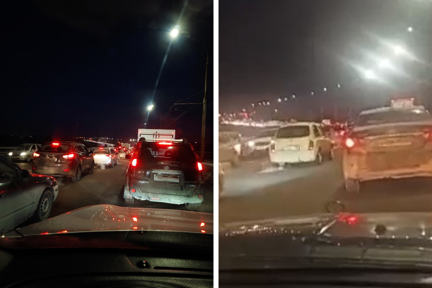 Омичи встали в пробки на «горбатом» мосту из-за нового светофора