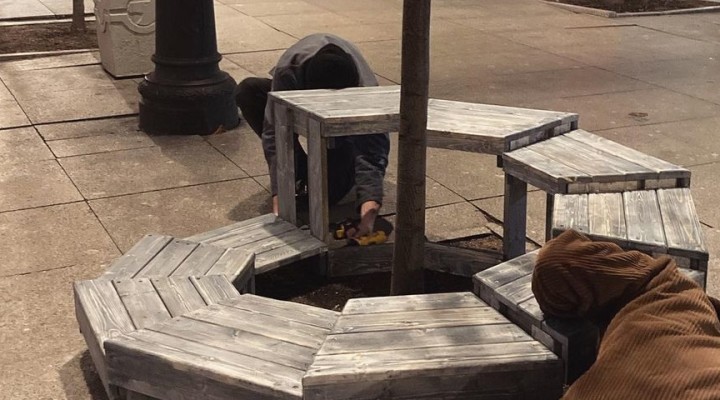 Чертеж тактичной скамейки сделал Федор Серебренников, а самую сложную работу по строительству выполнили сотрудники инклюзивных мастерских «Простые вещи».