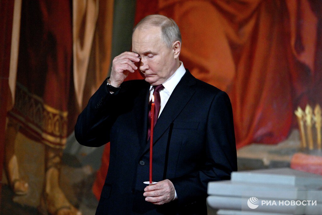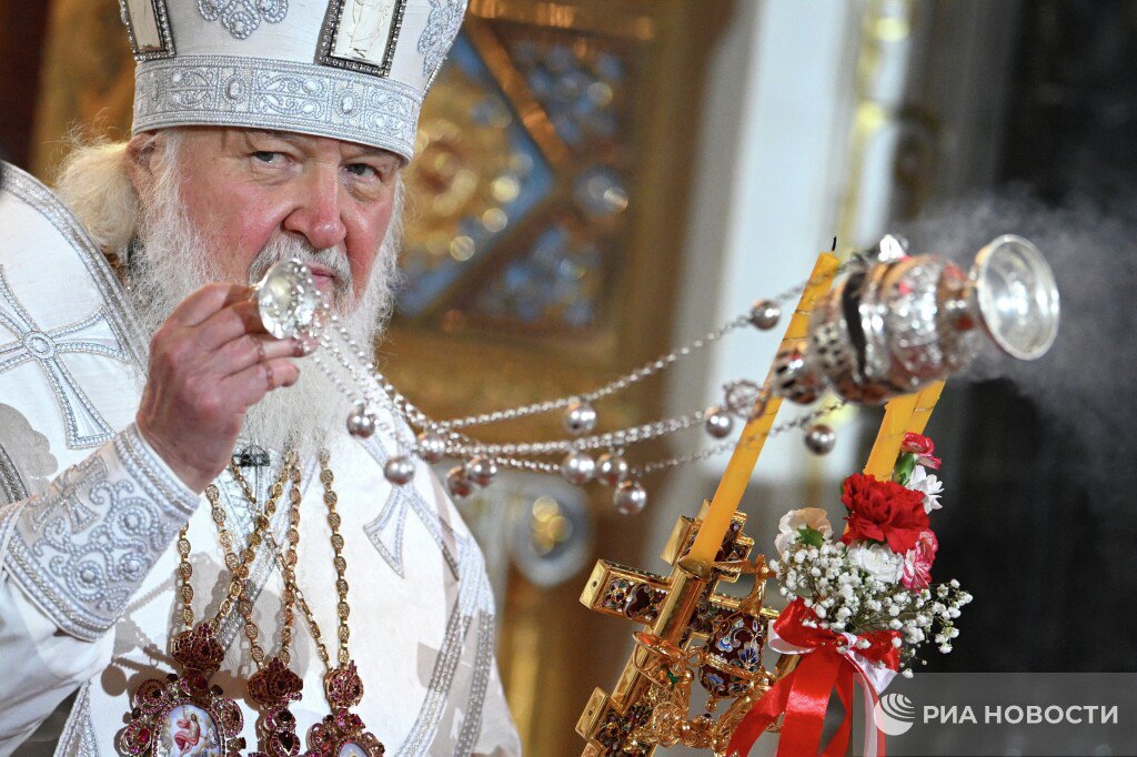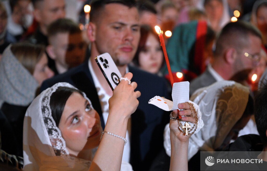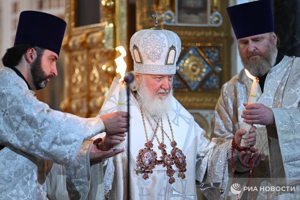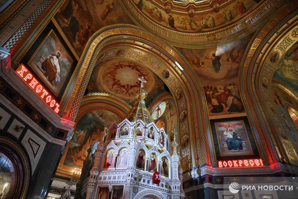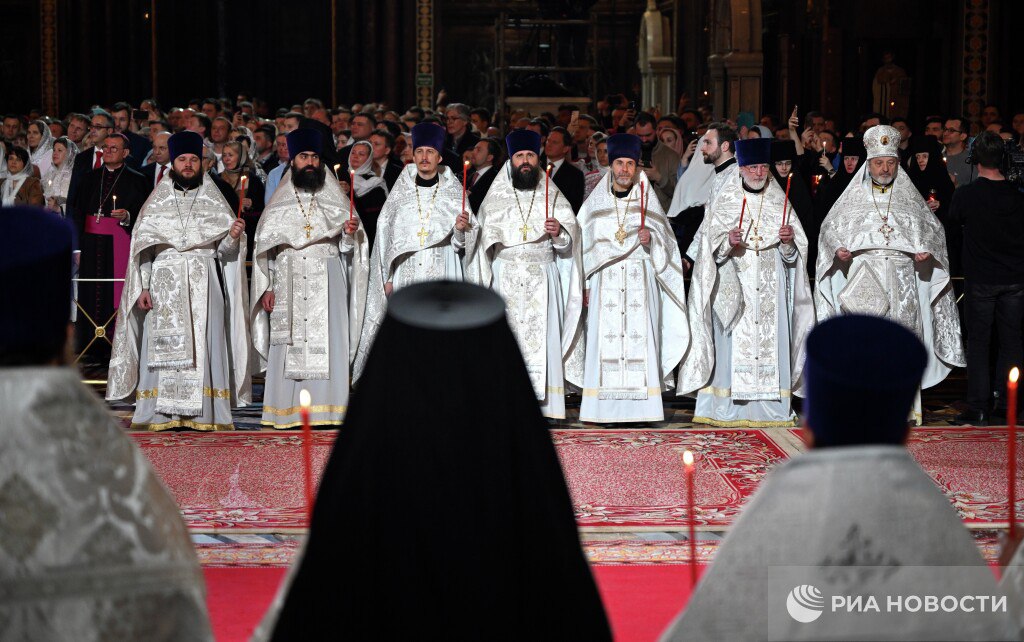 Ночное пасхальное богослужение в Храме Христа Спасителя. Кадры РИА Новости.