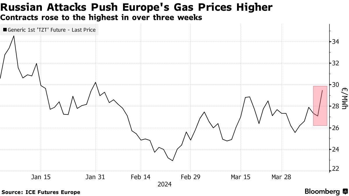 Российские удары по украинским газохранилищам приводят к росту цен в Европе, сообщает Bloomberg. Объекты Украины подключены к газовым сетям ЕС. На данный момент обстрелы не вывели их из строя, так как они находятся на глубине до двух километров. Но европейские газовые фьючерсы уже выросли на 9,5%, компенсировав потери предыдущих двух дней. Это был рекорд за более чем три недели. Последние российские удары показали потенциальный риск для хранения газа в Украине. При этом Украина имеет больше хранилищ, чем любая страна ЕС, и активно привлекает трейдеров для хранения там поставок. В этом году Киев предлагает иностранным трейдерам забронировать до 10 миллиардов кубометров своих хранилищ природного газа - около трети всего объема и примерно столько же, как и в прошлом году.
