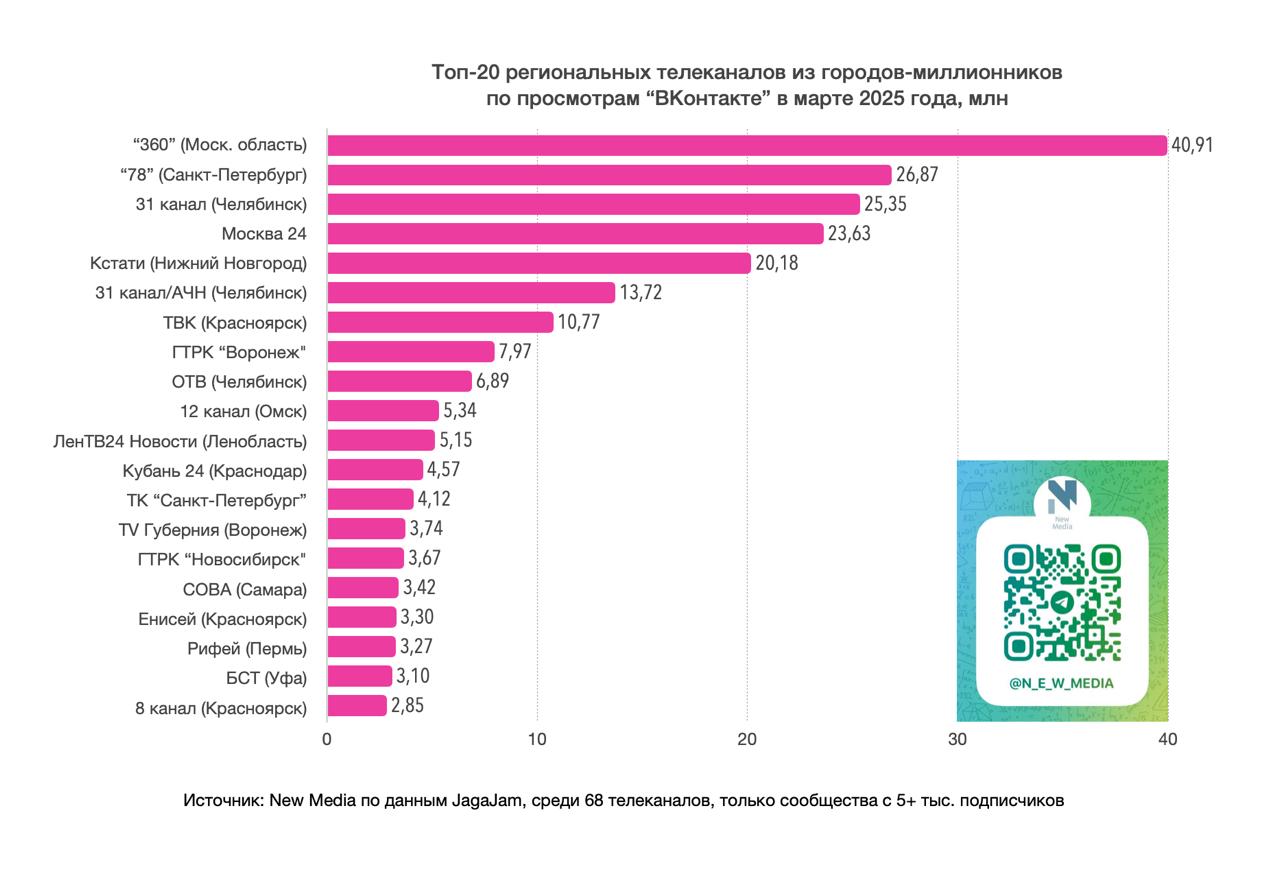 Группа 👾 в ВК впервые вошла в топ-3 рейтинга региональных телеканалов по просмотрам