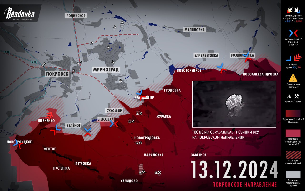Русская армия постучалась в ворота Покровска — итоговая сводка Readovka к исходу 13 декабря