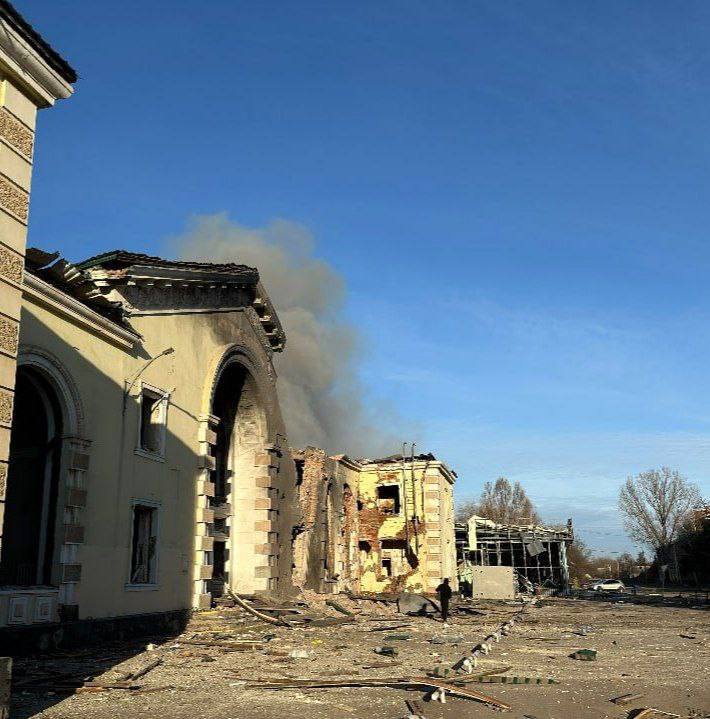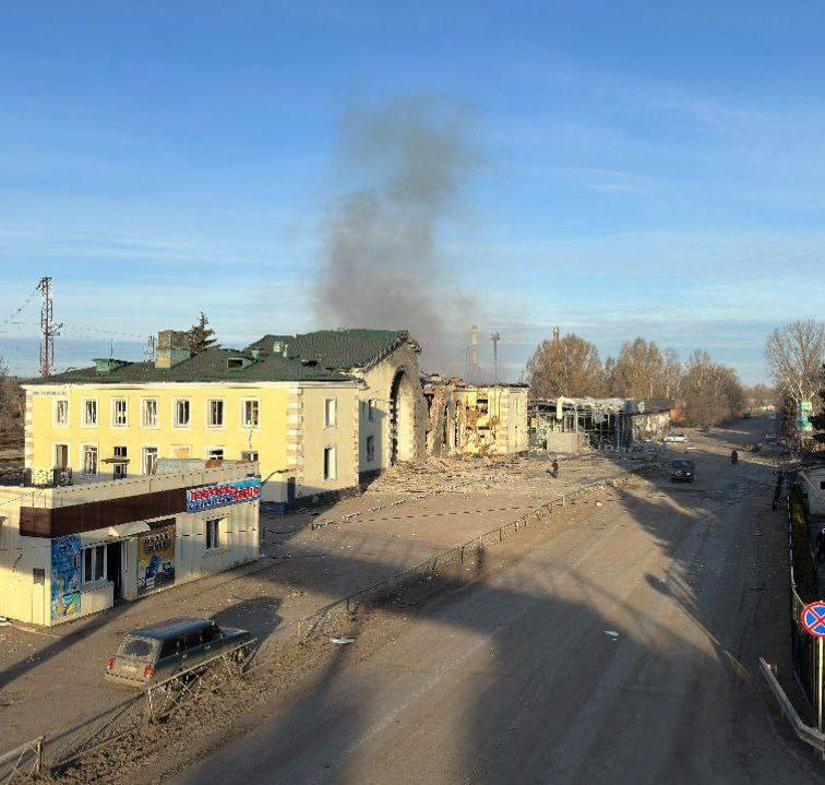 Ночной ракетный удар по узловой жд станции Константиновка.
