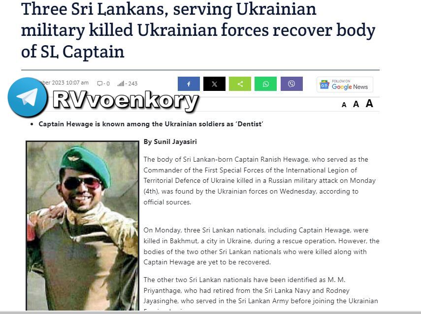 Для властей Шри-Ланки стало полной неожиданностью наличие ланкийский наёмников на Украине. О них стало известно после гибели аж трёх смуглых бойцов ВСУ, паспорта оказались ланкийскими.