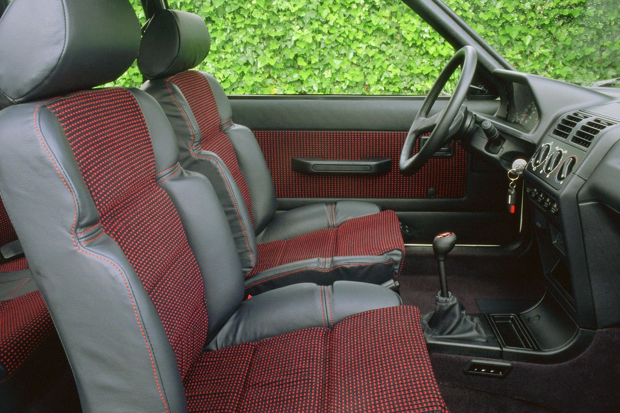 Но маленькому «пыжику» было чем ответить и в плане моторного потенциала. Ранние бензиновые версии 205-х оснащались полностью алюминиевыми четырехцилиндровыми агрегатами серии «X» с верхним распредвалом и цепным приводом (также известными как «Douvrin» или «Suitcase»), установленными почти горизонтально и являвшимися совместной разработкой с Renault. Их первое появление в автомобилях Peugeot состоялось еще на модели 104, начиная с 1972 года, а на 205-м их продолжили использовать с момента запуска в 1983 году. Но ведь кроме откровенно «овощных» старых «окололитровых» версий «двести пятый» с приставкой GTI предлагался с 1,6-литровым двигателем XU5J мощностью 105 л. с., а с другой ГБЦ он развивал уже 115 «лошадок» (XU5JA). А еще чуть позже его заменил 1,9-литровый агрегат XU9JA мощностью 128 л.с. Согласитесь, любой из этих показателей был более чем серьезным аргументом в битве за покупателя, учитывая 3,7-метровую длину кузова и снаряженную массу около 900 кг, что позволяло машине набирать заветную сотню за 8,6 секунды и разгоняться почти до 200 км/ч.
