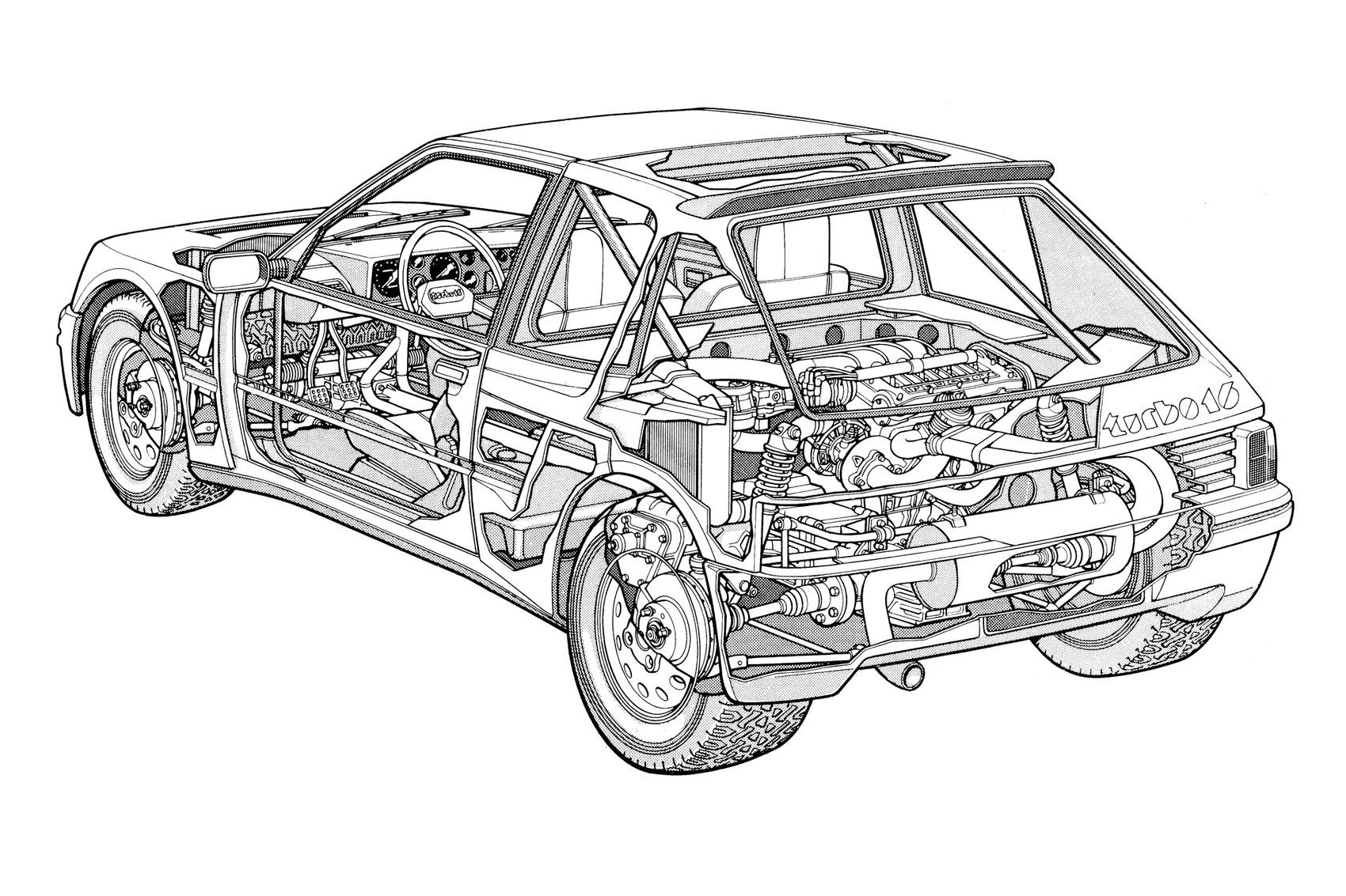 Визуально этот автомобиль был схож с обычной трехдверкой, но на самом деле их роднили разве что фары, решетка радиатора, лобовое стекло и дверные ручки. Ведь мощный 1,8-литровый турбодвигатель располагался в базе и приводил в движение все четыре колеса, а для изготовления кузова с интегрированной трубчатой рамой широко использовался углепластик.