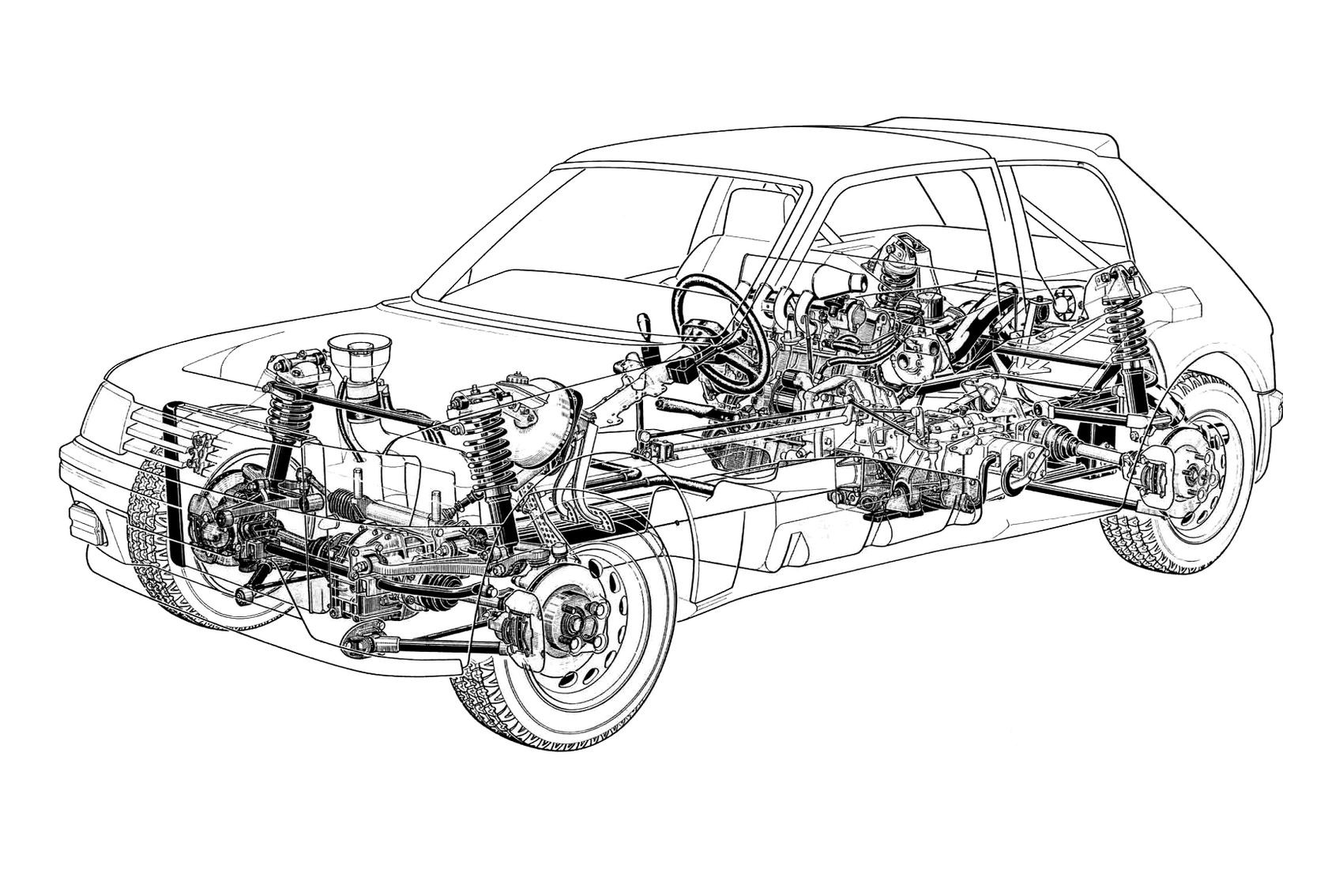 Чтобы создать GTi, Peugeot позаимствовали у Citroën BX GTi алюминиевый мотор XU объемом 1580 куб. см, 105 лошадиных сил которого было достаточно, чтобы запускать легковесный французский снаряд до 100 км/ч за 8,6 секунды и разгонять его до приличных 190 км/ч.