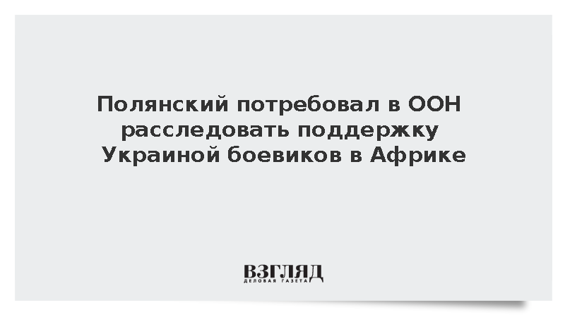 Полянский заявил, что Россия требует тщательного международного расследования с привлечением механизмов ООН в связи с поддержкой Украиной боевиков в странах Африки, передает РИА «Новости».