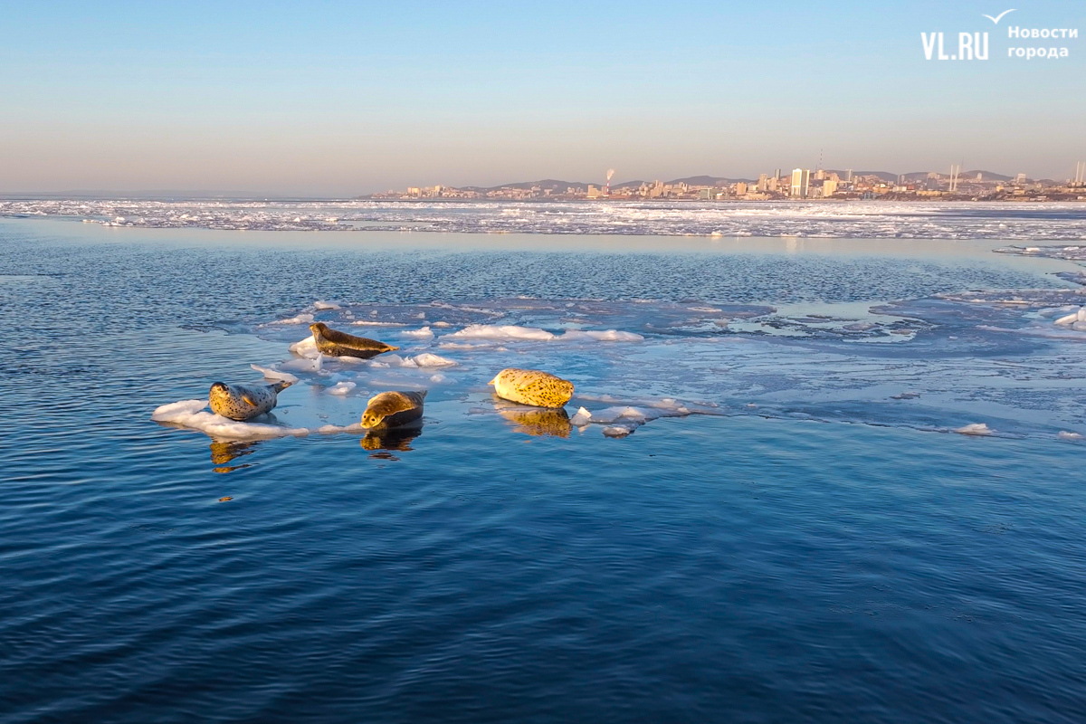 Незадолго до начала разрушения ледового поля в Амурском заливе фотограф Новостей VL.ru нашёл небольшое лежбище ларг на самой кромке льда у берегов Владивостока. Это их временное пристанище, здесь тюлени отдыхали, играли и грелись на солнце. Сейчас, когда в городе поднялся сильный ветер, разрушивший лёд, ларги покинули пролив. Но жителям Владивостока, гуляющим у моря, следует быть внимательными — шторм может вынести на берег маленьких неокрепших щенков нерп.
