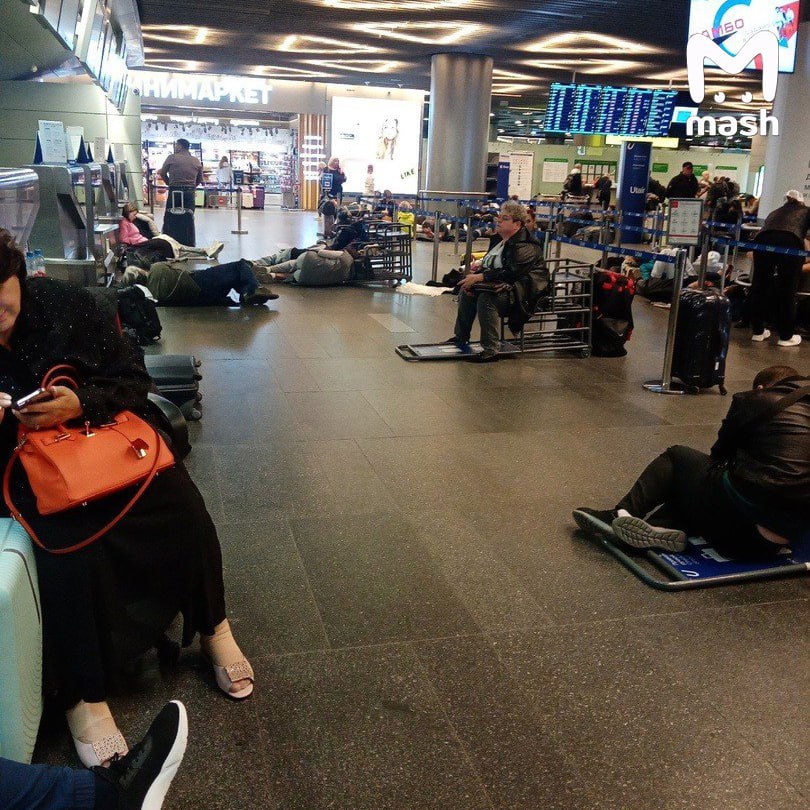В российских аэропортах всё поломалось — массовый коллапс охватил основные аэропорты страны из-за атак беспилотников. Люди ждут свои рейсы по много часов, спят где придётся, самолёты выстраиваются в очереди на взлётно-посадочных.