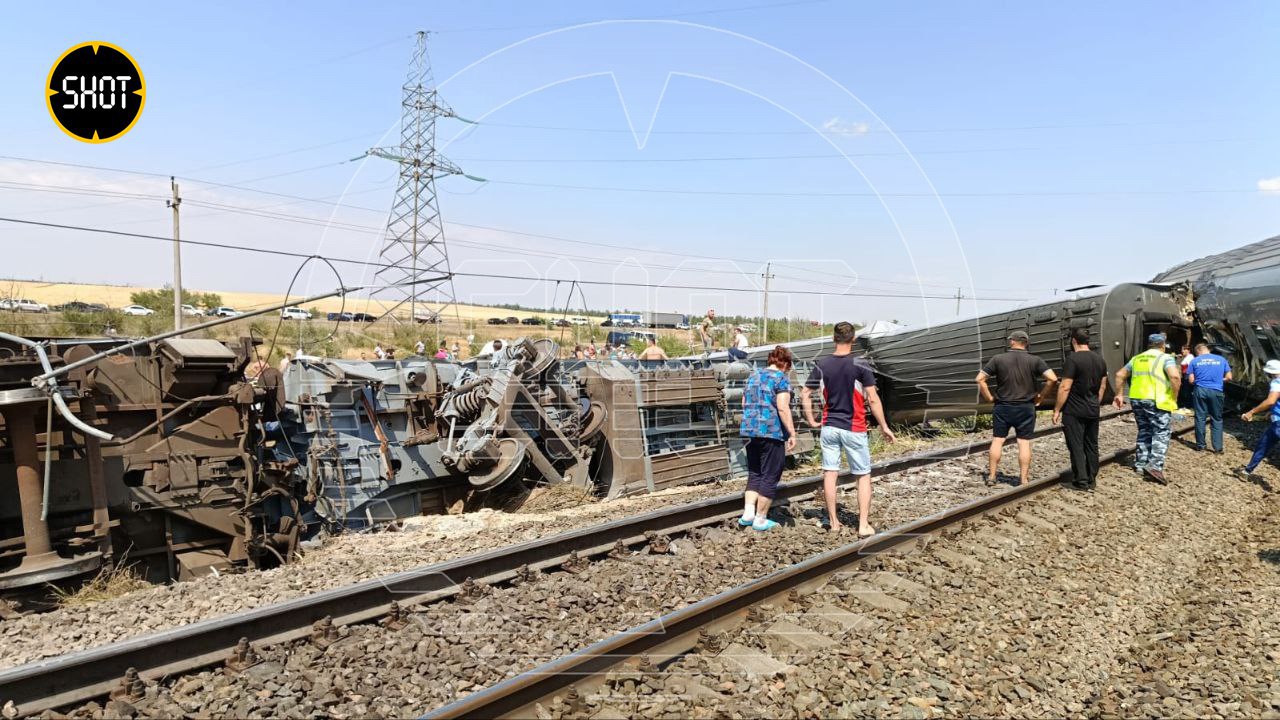 Поезд сошёл с рельсов в 4 км от станции Котельниково. К месту крушения в ближайшее время вылетят два вертолёта МЧС.