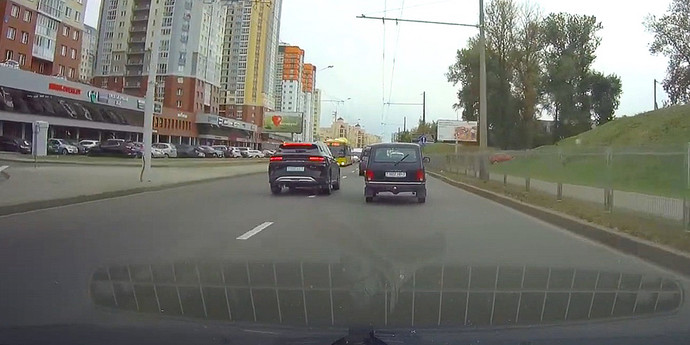 «Через весь частный сектор на Богдановича он ехал за мной, дышал в спину, — поделился автор записи. — По итогу пошел в лоб автобусу. В результате обогнал три автомобиля и практически до станции метро „Немига“ ехал со мной рядом в потоке (чуть впереди, виляя из ряда в ряд)».