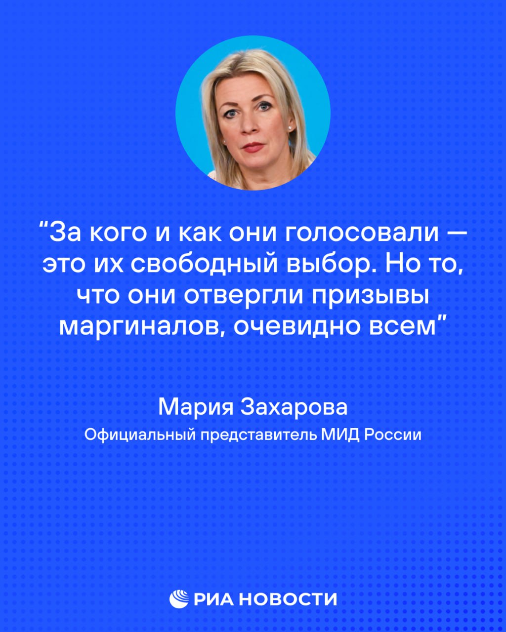 Россияне за рубежом отвергли призывы маргиналов и выстроились в очереди не на акциях протеста, а чтобы проголосовать на выборах, заявила Захарова