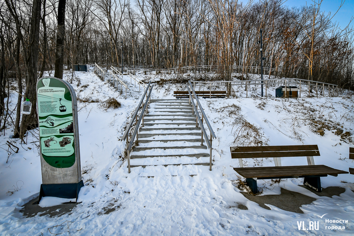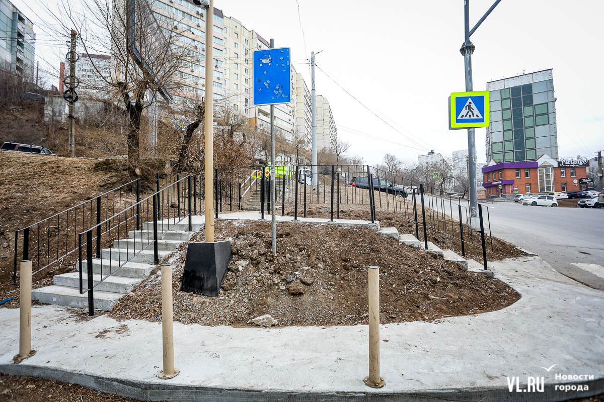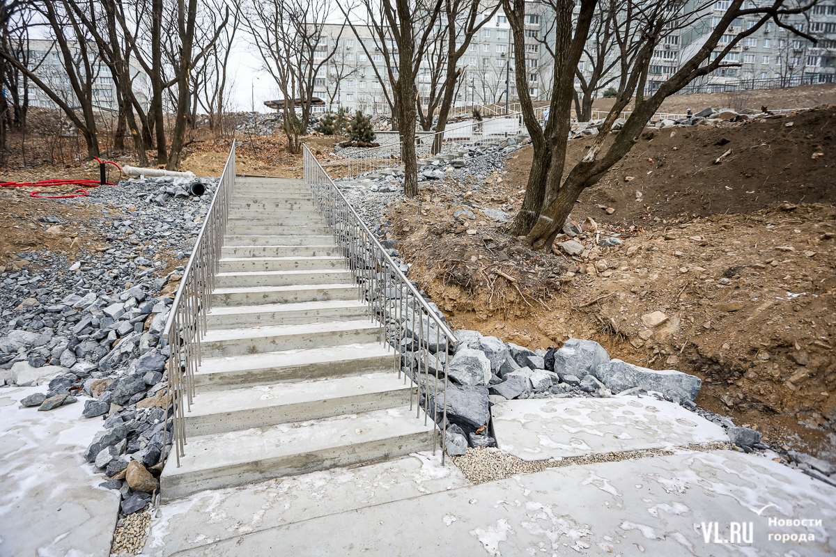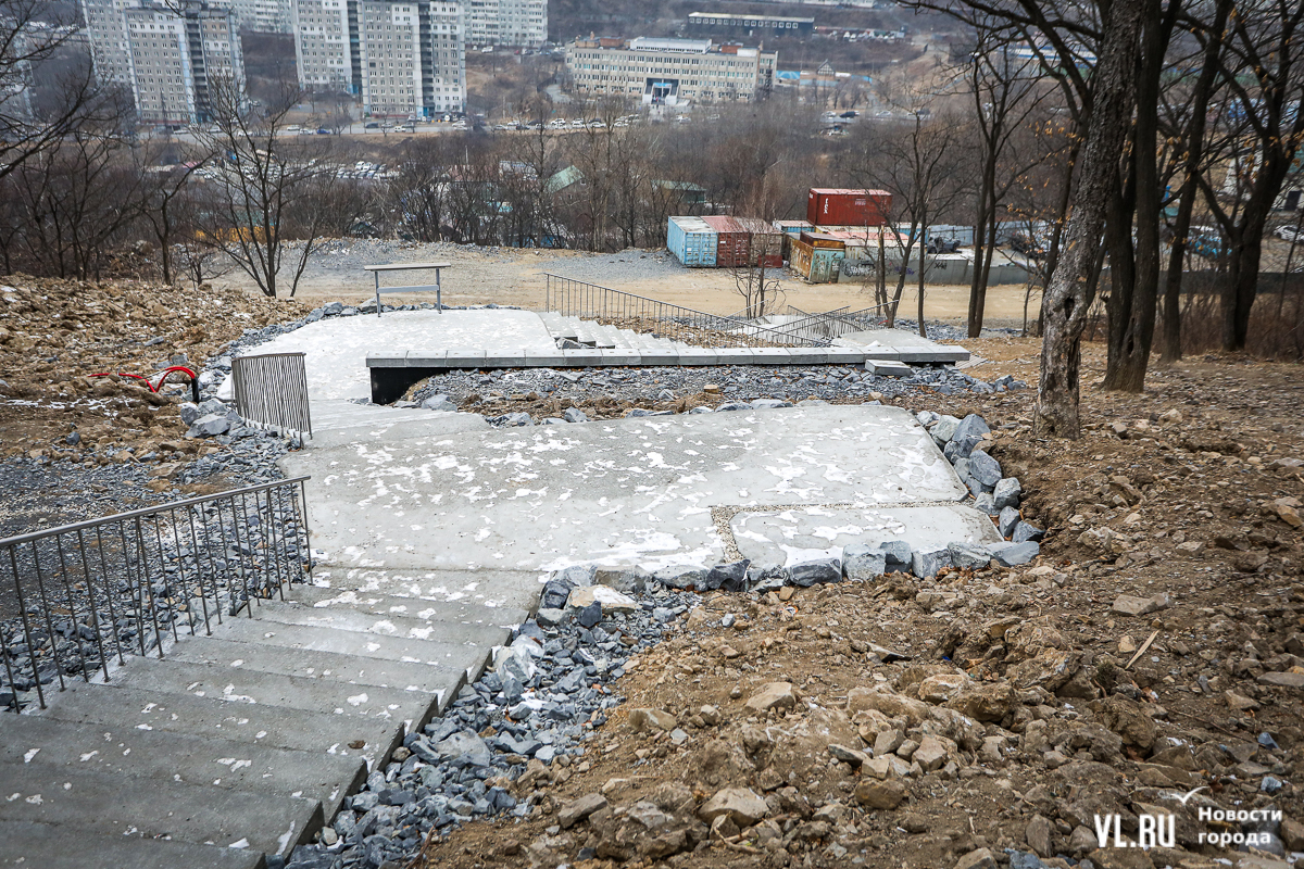 В 2024-м компания «Владстройзаказчик» доделала благоустройство лестницы возле нижней станции фуникулёра. Получилось не совсем то, что обещали: зоны отдыха со скамейками рядом с эстакадой фуникулёра делать не разрешили. Но саму лестницу и газон в сентябре официально открыли. Правда, освещение к тому времени не сделали.