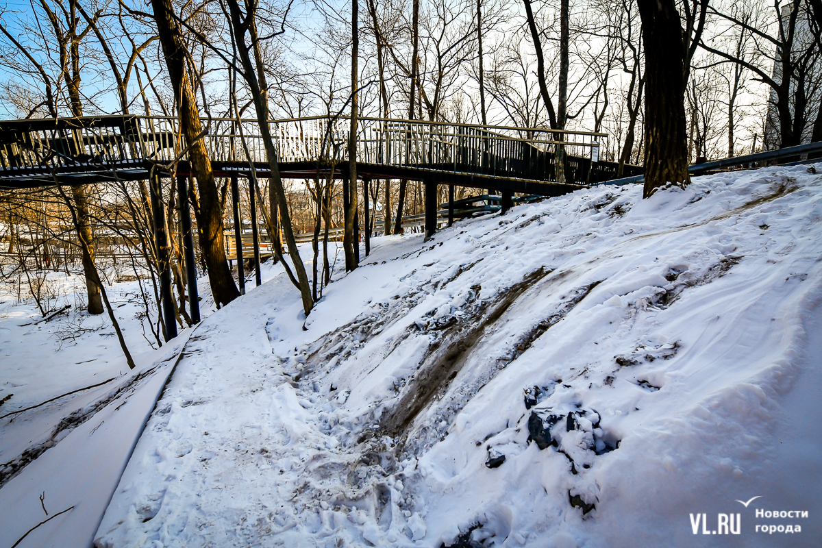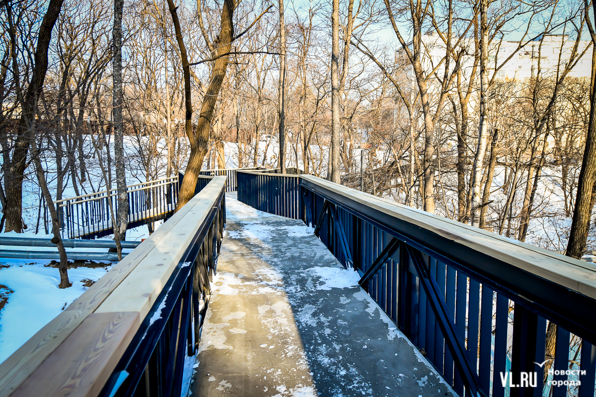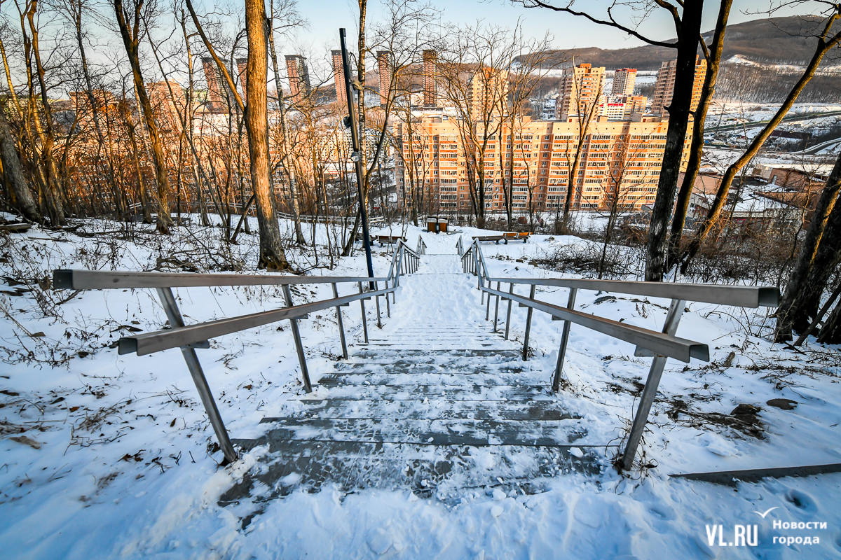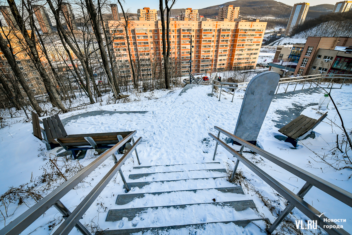 В 2024-м компания «Владстройзаказчик» доделала благоустройство лестницы возле нижней станции фуникулёра. Получилось не совсем то, что обещали: зоны отдыха со скамейками рядом с эстакадой фуникулёра делать не разрешили. Но саму лестницу и газон в сентябре официально открыли. Правда, освещение к тому времени не сделали.