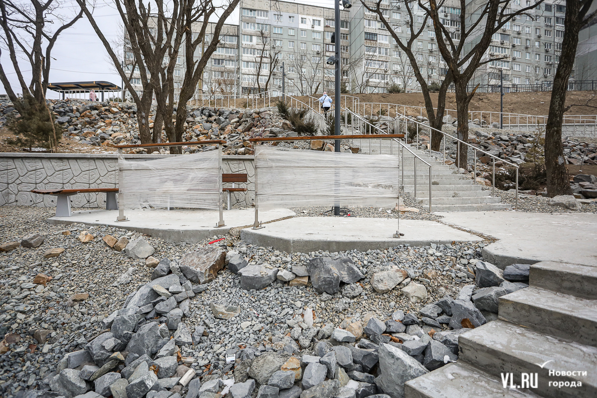 Про «Твой проект» мы ещё скажем, а про нацпроект стоит добавить про победителя прошлых лет – парк в Снеговой Пади. С большим опозданием, уже в 2024 году, здесь сделали входную группу со скамейками и урнами, длинную бетонную лестницу на сопку, небольшой навес с видовой. Однако в январе уже этого года мэрия подала в суд на подрядчика, который отказался устранить дефекты, выявленные в период гарантийного срока. В их числе – оголение кабелей, навал строительного мусора, ржавление элементов металлической лестницы и прочее. Работы выполняла компания «Технострой ДВ», которая просрочила каждый этап выполнения работ, им насчитали 2,6 млн рублей от общей стоимости контракта в 60,25 млн рублей. Мешали стройке в том числе найденные мины.
