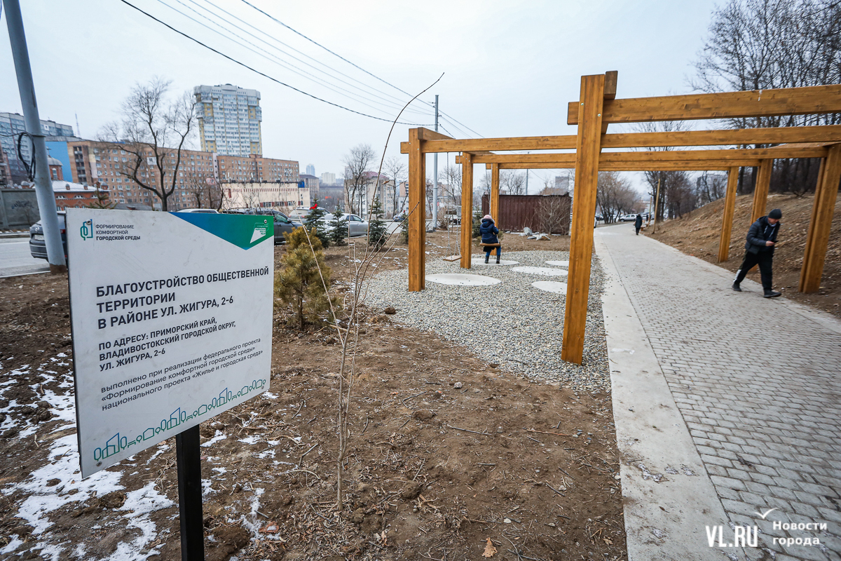 На лице Архангельской во Владивостоке на месте косогора теперь есть Туманная аллея – интересная дорожка-змейка, лавки и качели, а также освещение. Летом около Жигура, 2 благодаря местным жителям появился уже упомянутый сквер имени Карла Жигура. На Народном проспекте около остановки «Военное Шоссе» (между Народным проспектом, 47 и 41) вместо пустыря сделали небольшую пешеходную зону со скамейками и освещением.