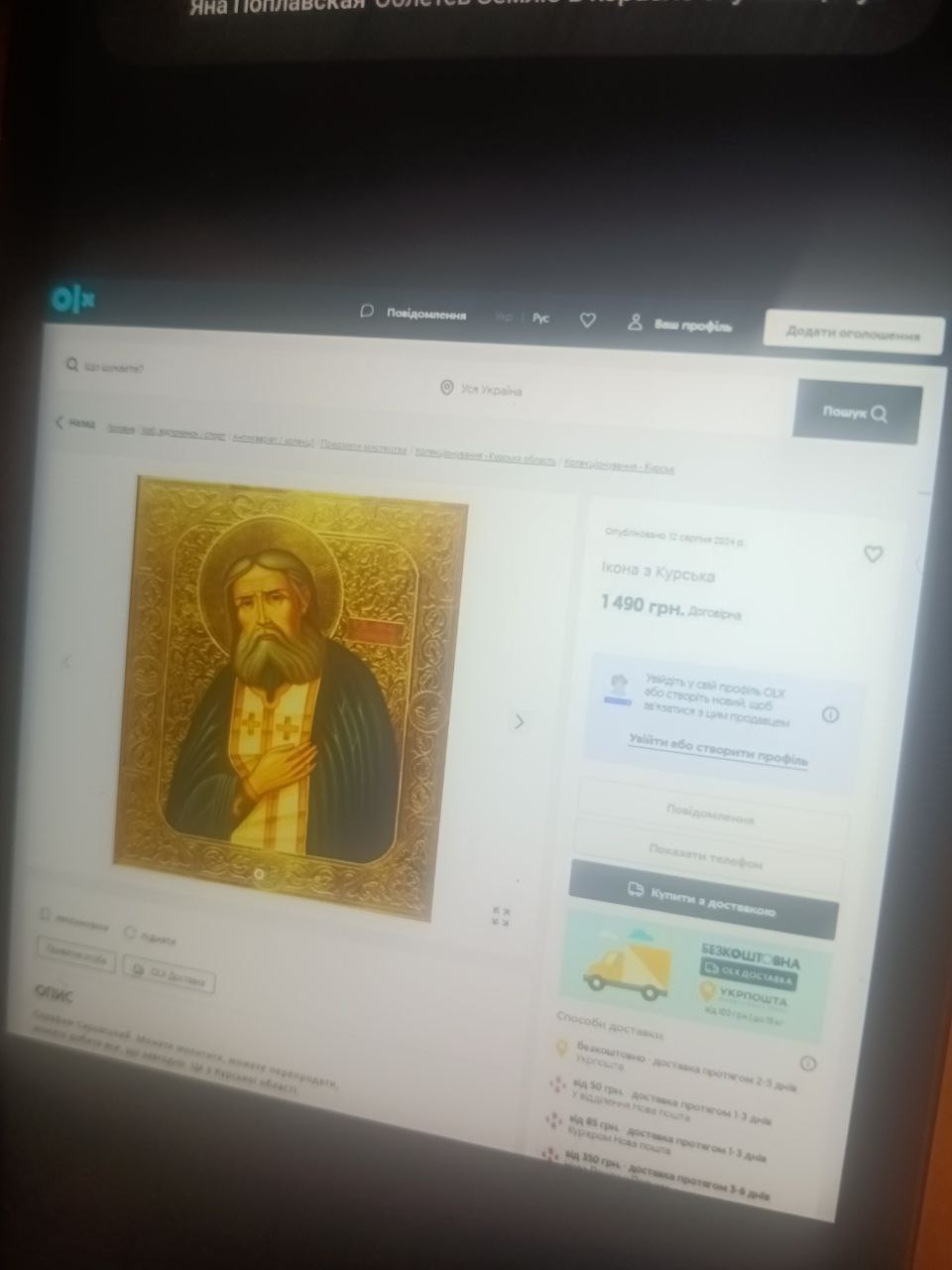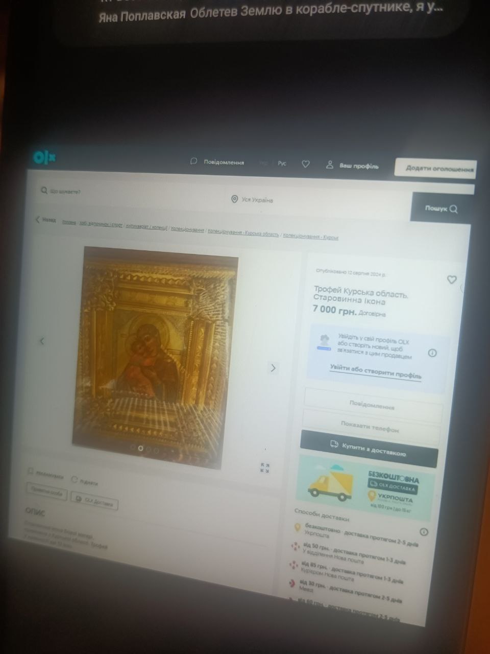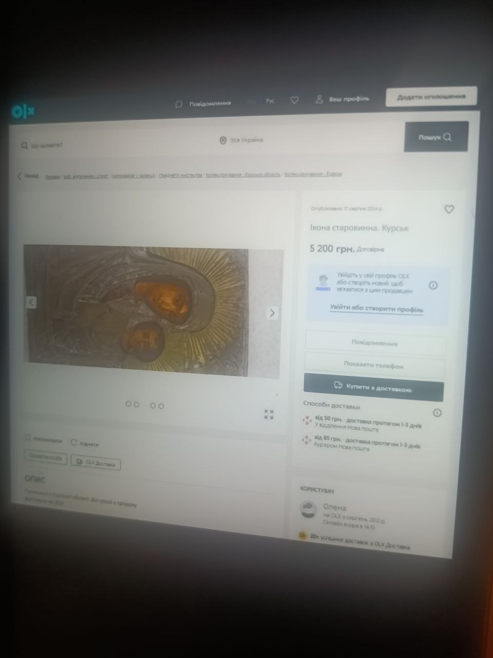 Более того, в самих объявлениях «владельцы» гордятся тем, что украдены святые реликвии в Курской области. Так и пишут: «Курск, трофей». Скриншоты таких объявлений дошли в том числе до командира разведгруппы «Ахмата» с позывным Аид. О решении, принятом после поступившей информации, Аид сообщил в телеграм-канале «Мракоборцев»:
