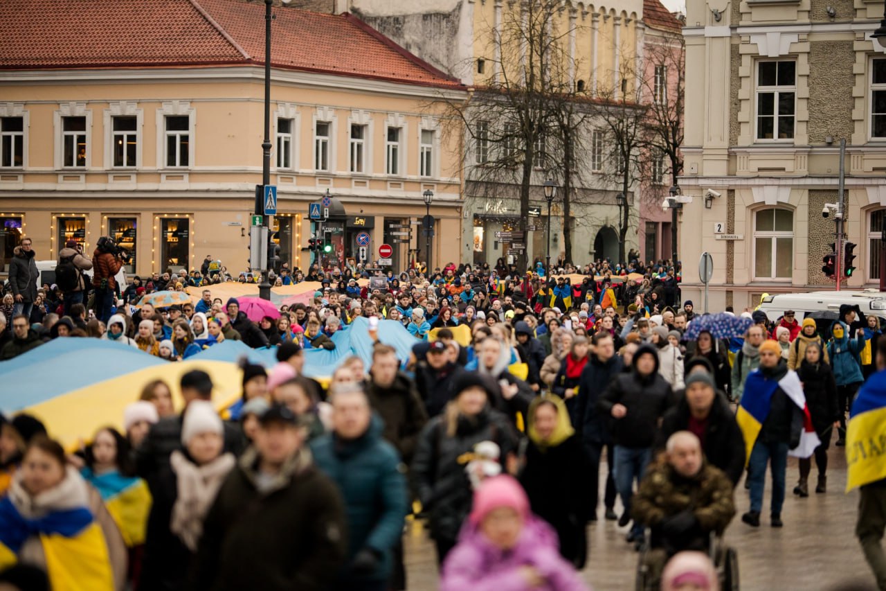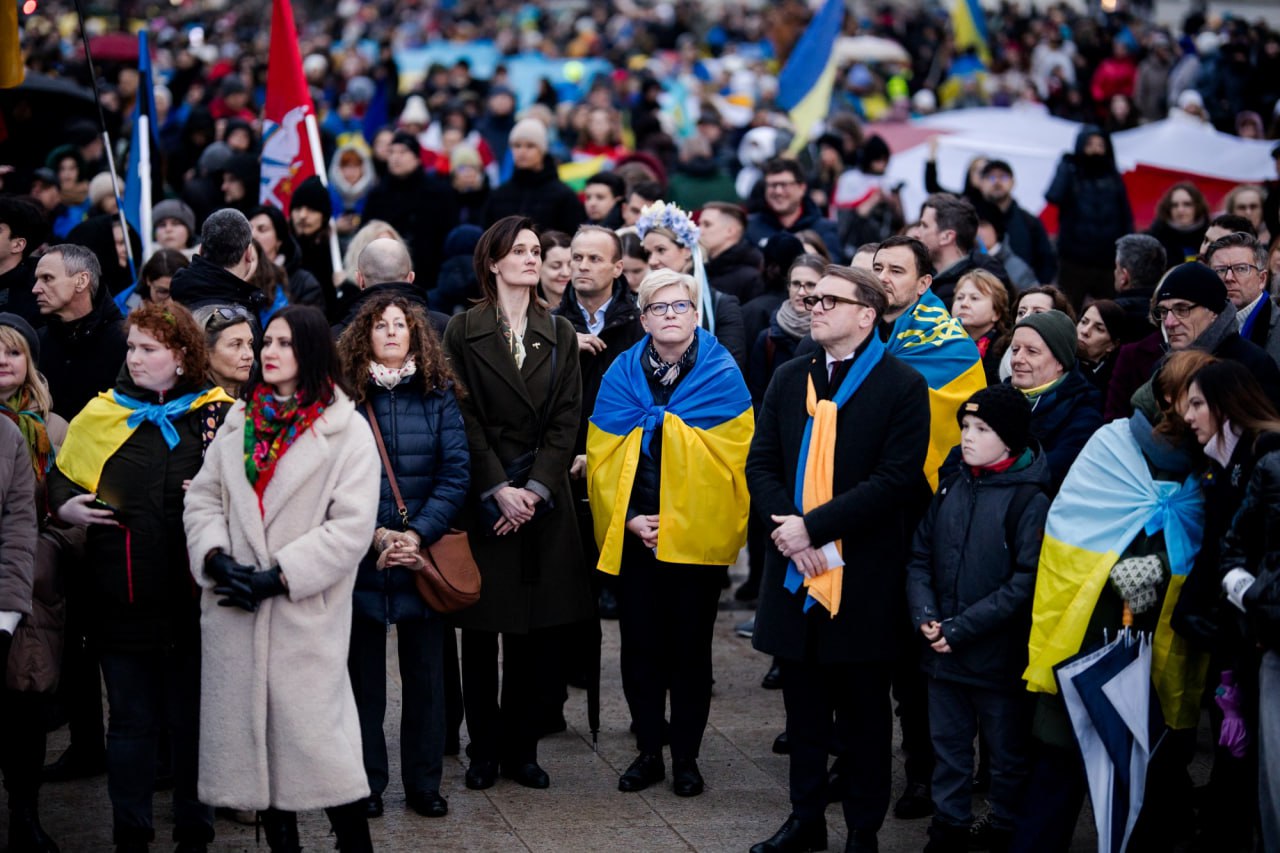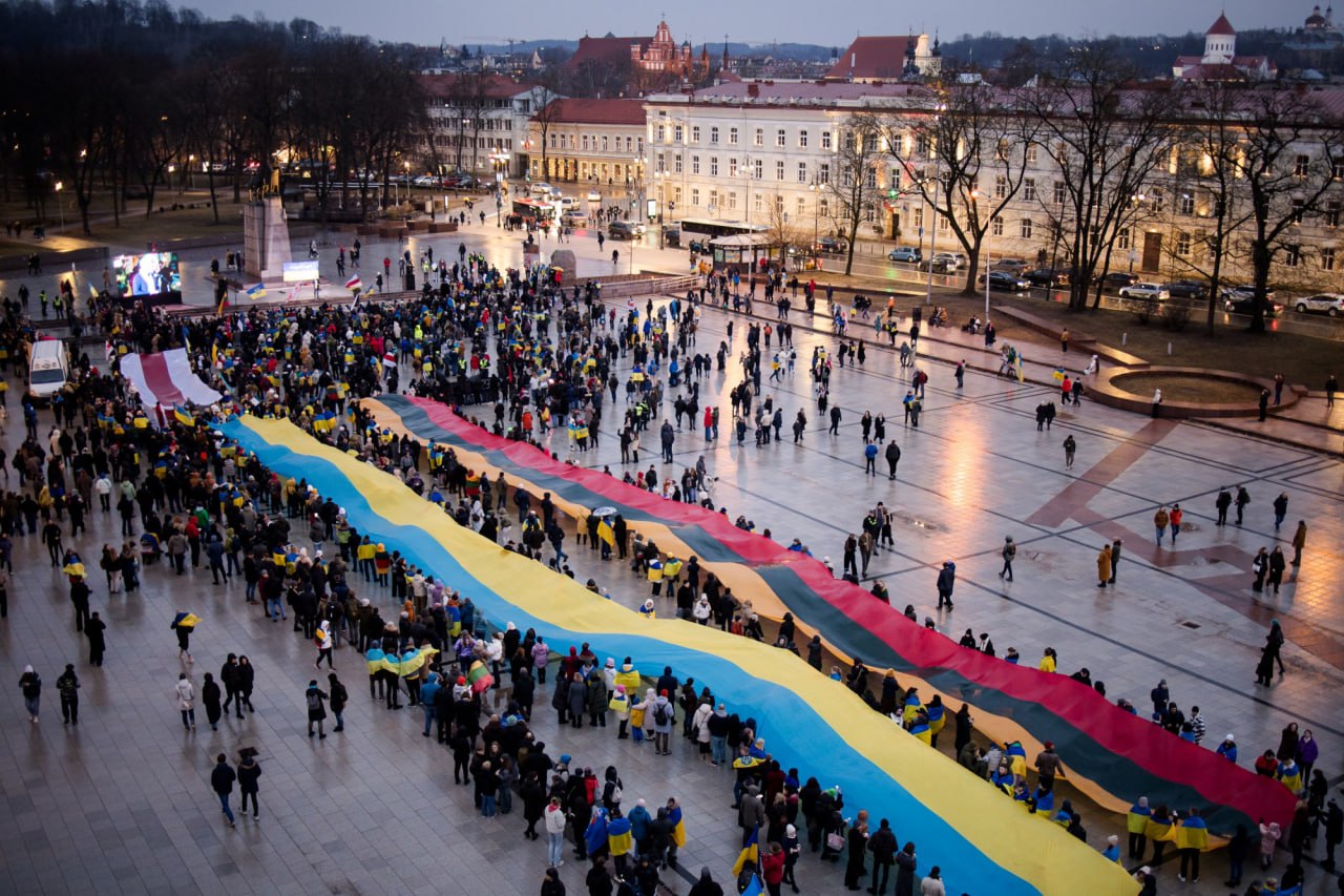 Тысячи литовцев и украинцев вышли на митинг в поддержку Украины на Кафедральной площади Вильнюса