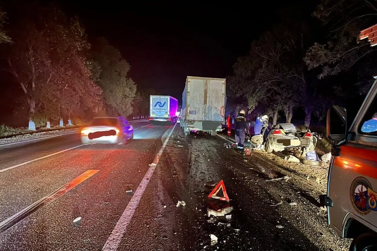 - Вчера в 21.20 на автодороге «Кавказ» 75-летний водитель, управляя автомобилем «Ниссан Альмера», выехал на встречную полосу, где это запрещено, и лоб в лоб столкнулся с грузовиком «МАН» с прицепом, - говорится в сообщении главка полиции.