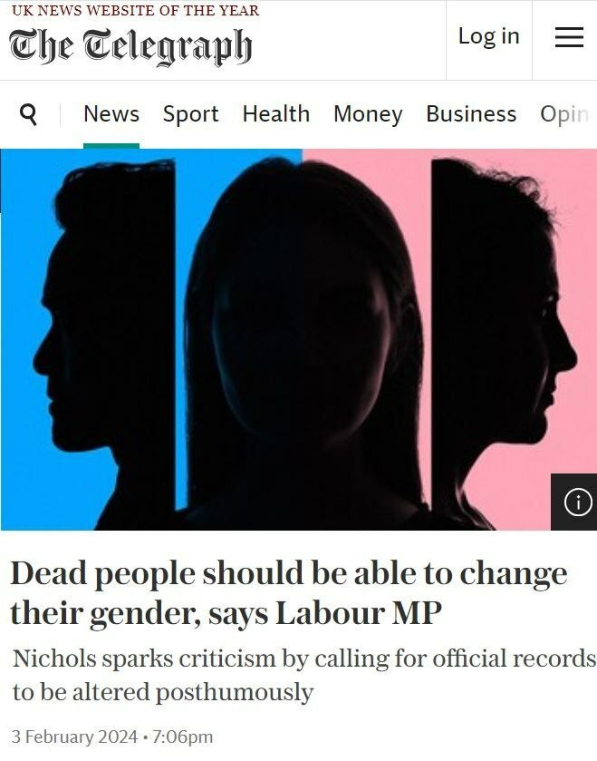 Британская The Telegraph вышла с «потрясающим» заголовком: «Мертвые люди должны иметь право менять пол». Это заявление прозвучало не в «Палате номер 6», а в британском парламенте от депутата-лейбориста. Как вы считаете, психически здоровые люди такое вообще могут обсуждать?