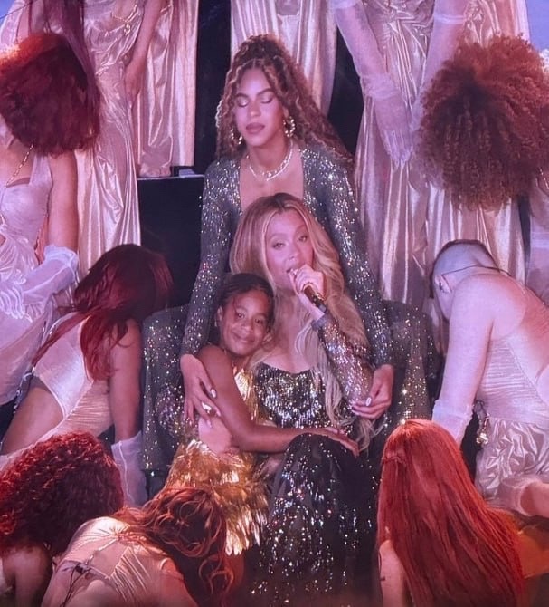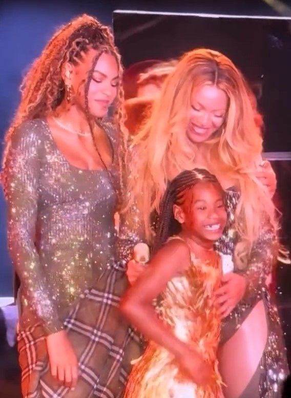 На сцену вместе с артисткой вышла старшая дочь Блю Айви, которая не впервые поддерживает звездную мать на концертах. А настоящим сюрпризом для зрителей стал дебютный выход на сцену второй наследницы Бейонсе, 7-летней Руми Картер, у которой есть брат двойняшка Сэр.