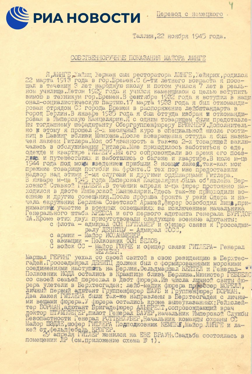В документах приводятся дополнительные подробности того, что происходило в бункере Гитлера до и после самоубийства нацистского фюрера.