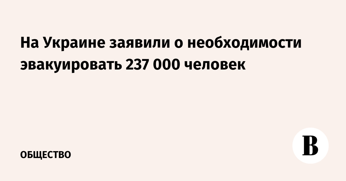 С украинских территорий необходимо эвакуировать около 237 000 человек, с июня власти вывезли из Днепропетровской области и подконтрольной ВСУ части Донецкой области более 64 000 человек. Такие данные приводит Telegram-канал министерства развития общин и территорий республики.