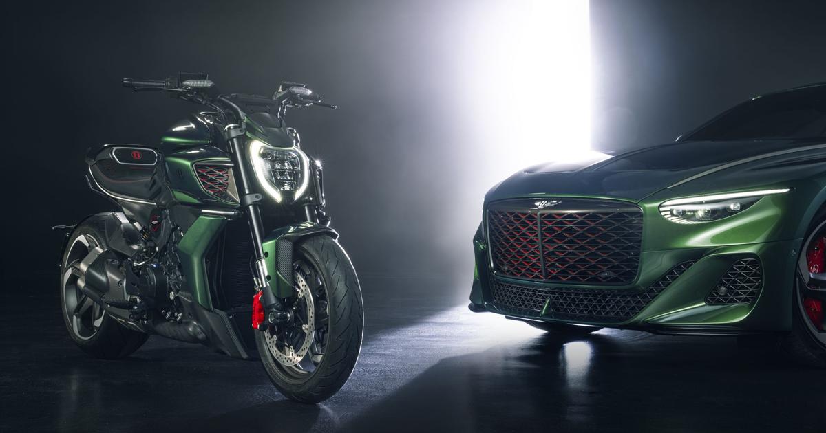 Alors, elle s’est naturellement tournée vers son voisin de Sant’Agata pour proposer la Ducati 1260 S édition Lamborghini, puis en début d’année la Streetfighter V4 Lamborghini, une série limitée de la Panigale V4 S’23 transposant l’esprit de la berlinette Huracán STO. En pleine forme, le champion du monde de MotoGP récidive. Cette fois-ci, il s’est rapproché de Bentley, une autre marque de la galaxie VW, pour revisiter son inclassable Diavel V4. Les designers des deux maisons ont travaillé ensemble pour injecter un peu de l’esprit du coupé hors-série Batur produit à seulement 18 unités par Mulliner, l’atelier de personnalisation de Bentley.