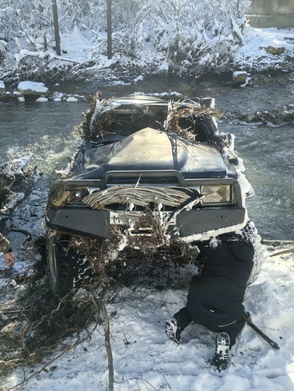 «Только вчера удалось извлечь из воды автомобиль, который унесло течением реки в станице Убинской 11 января.