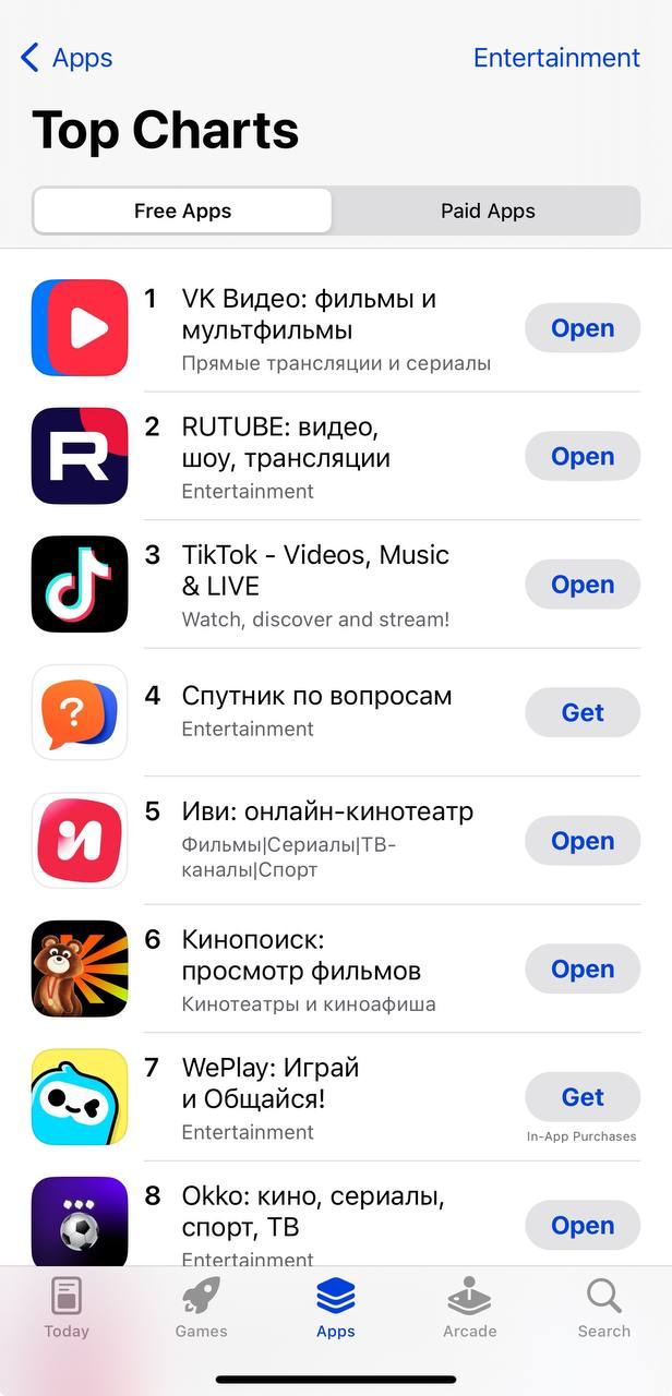 🇷🇺📈 «VK Видео» и RUTUBE попали в топ App Store и Google Play