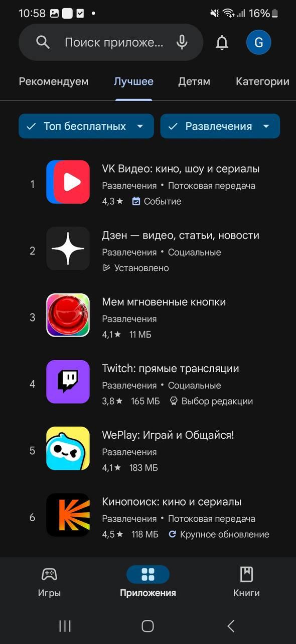 VK Video также возглавил чарты Google Play.
